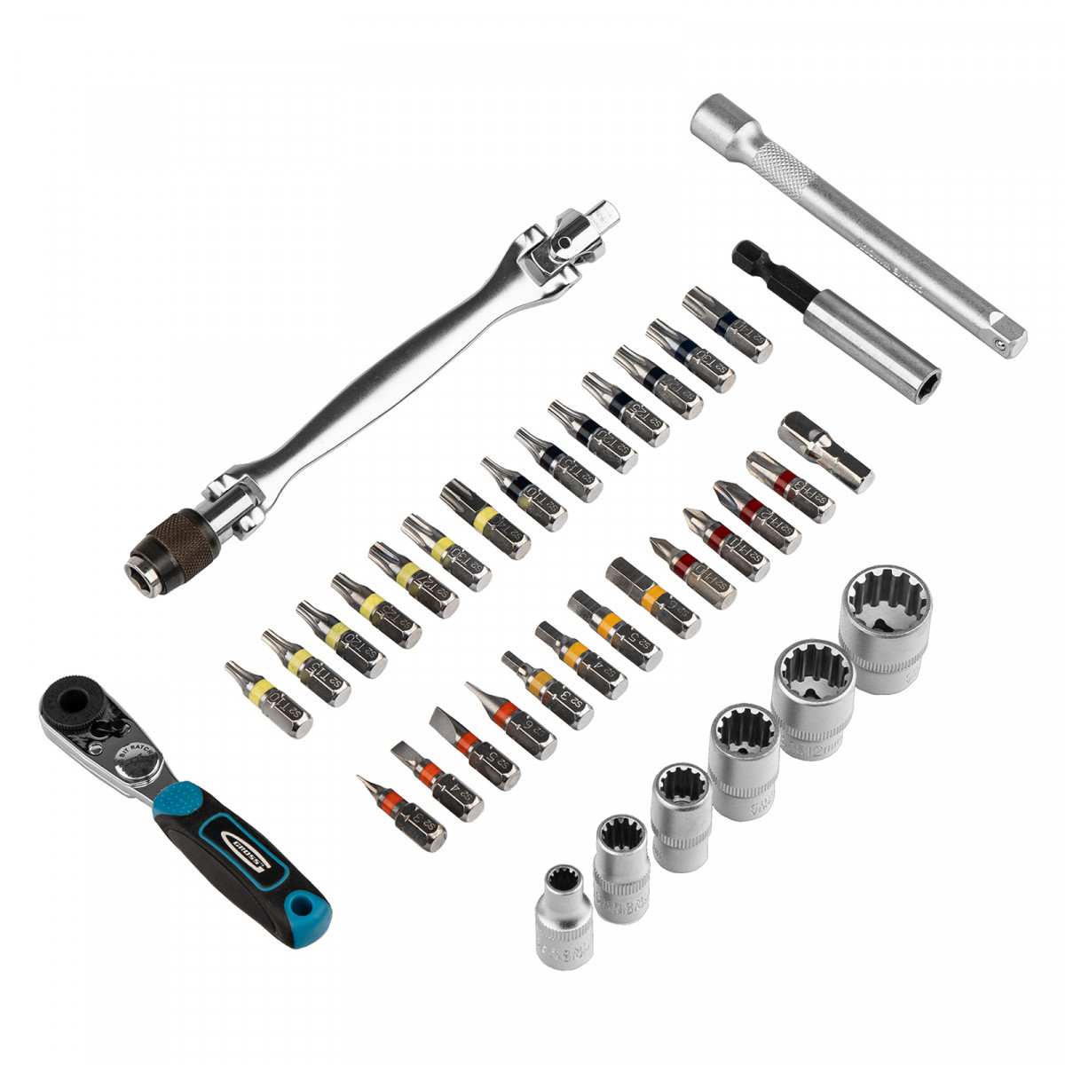 Набор бит и головок торцевых, 1/4, карданный ключ, трещотка, адаптер, S2, 37 шт. Gross