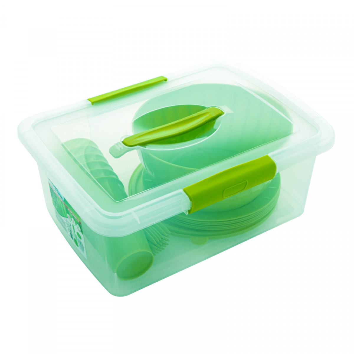 Контейнер - 1 штКрышка - 1 штТарелка - 6 штСтакан - 6 штВилка - 6 шт