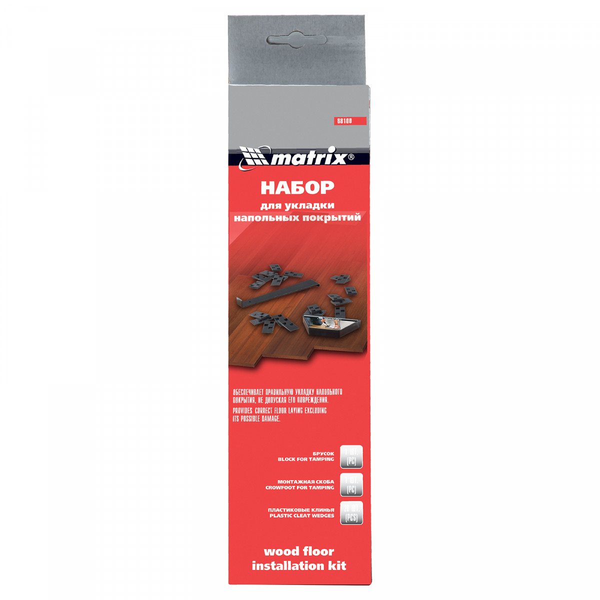 Набор Matrix 88100 предназначен для правильной укладки напольных покрытий без дефектов и повреждений. Набор включает все необходимое для монтажа: распорные клинья, брусок и скобу. Клинья позволяют точно выровнять первый ряд и отрегулировать зазор между панелями и стеной. При помощи скобы можно подбить последний ряд для плотной усадки. Брусок защищает замок панелей, если нужно подбить стыки молотком.