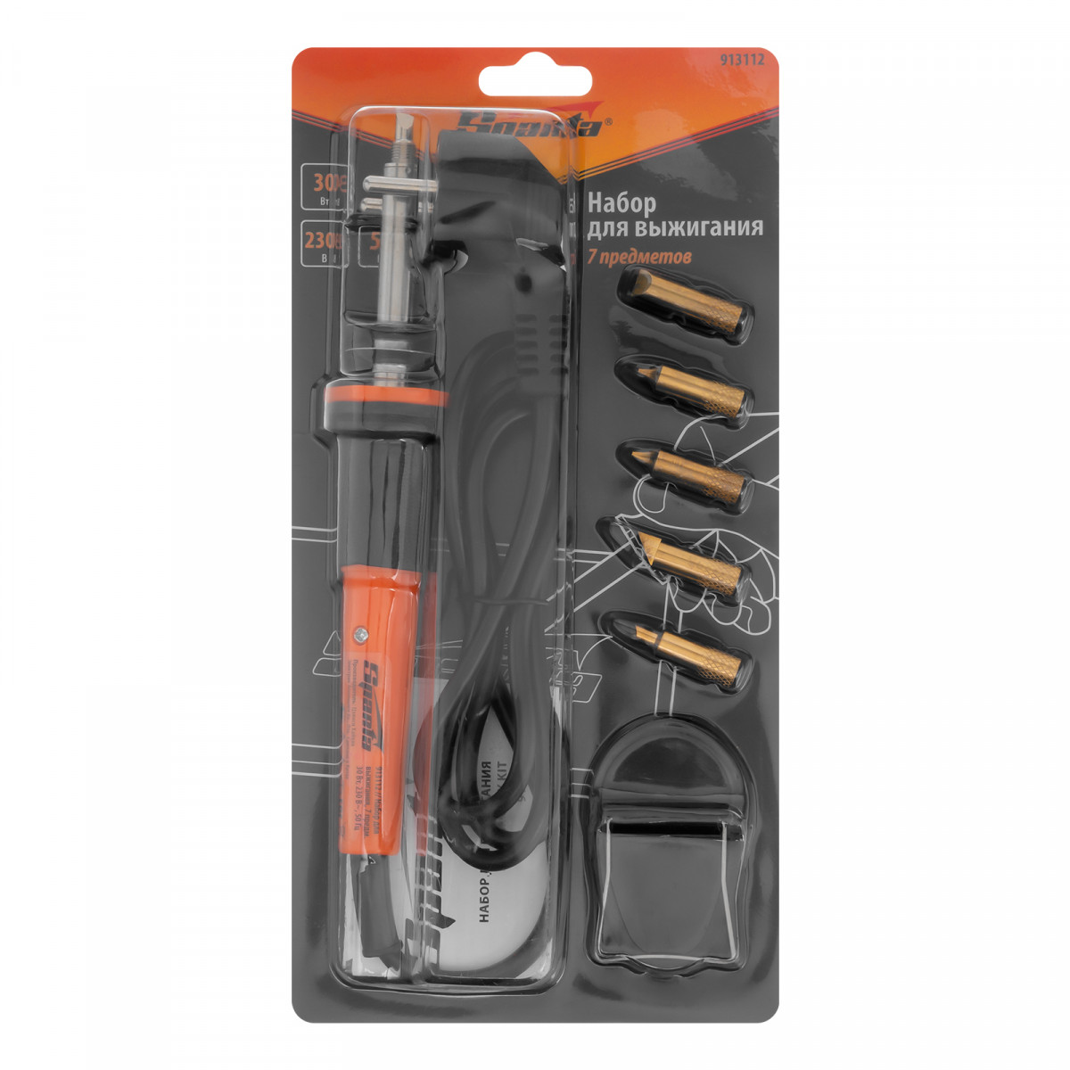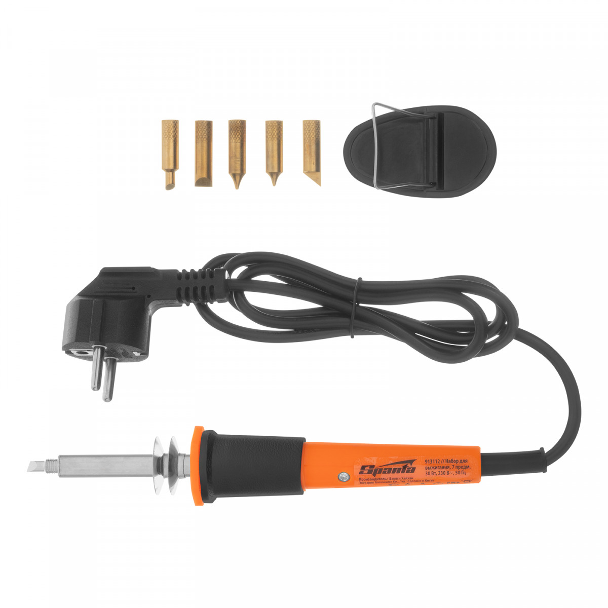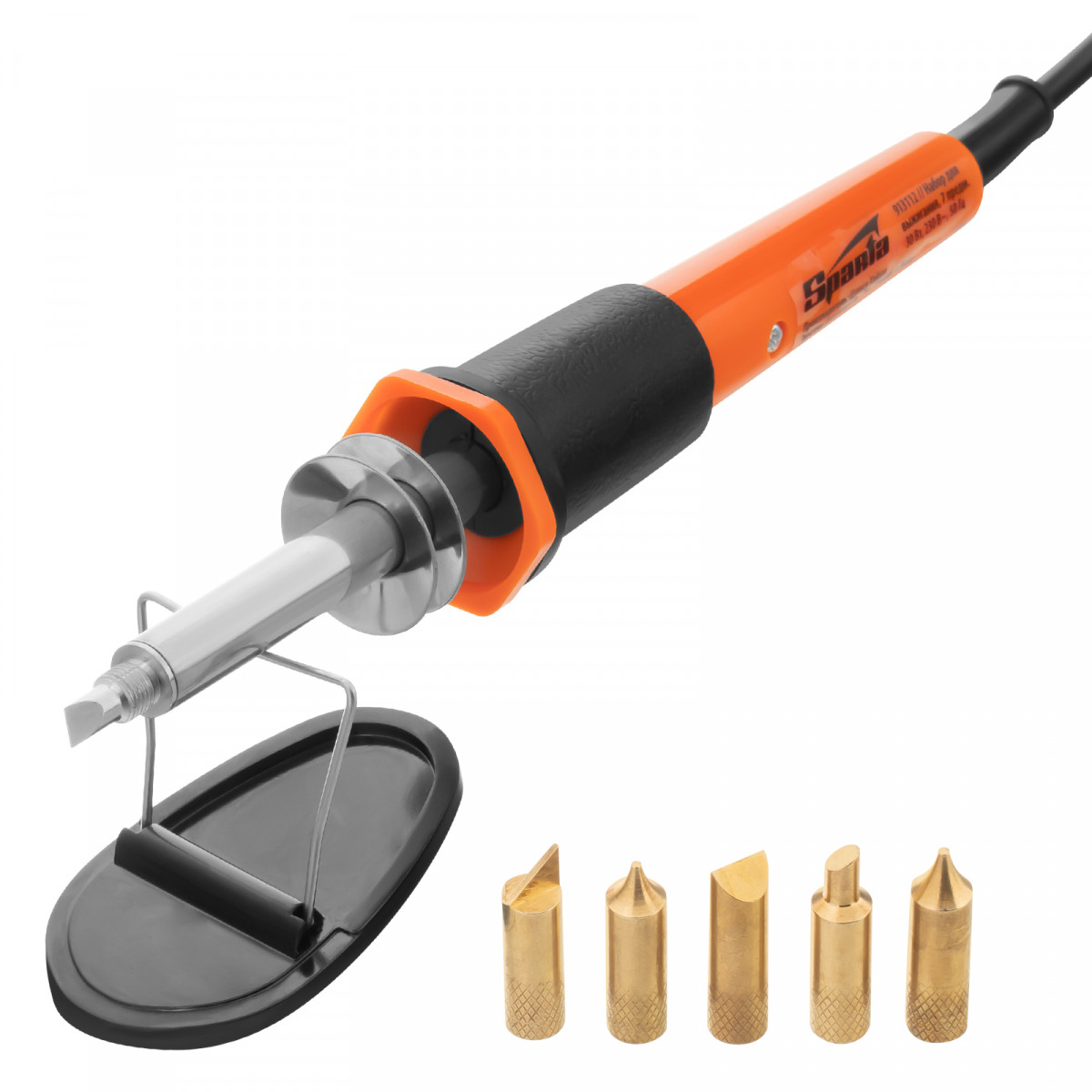Набор для выжигания, 7 предметов: паяльник 30 Вт, подставка, жала сменные Sparta