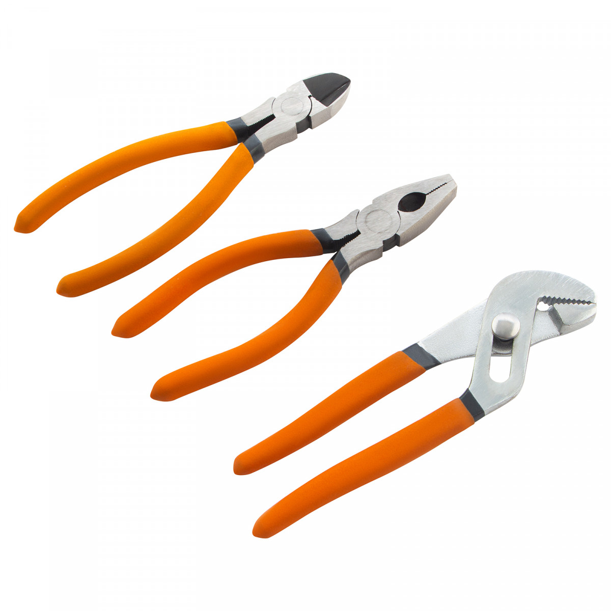 Набор губцевого инструмента №2 Sparta 13545 включает 3 предмета — бокорезы, переставные клещи и плоскогубцы. Их используют для перекусывания проводов и проволоки, а также для зажима и удержания заготовок с целью их соединения или обработки. Переставные клещи позволяют удерживать детали разных форм и размеров, поскольку величина раствора губок у них регулируется. Набор будет полезен для проведения слесарных, монтажных, сантехнических работ, а также пригодится во время ремонта электроники или бытовой техники.