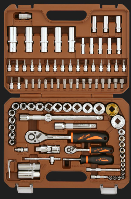 Универсальный набор инструмента Ombra OMT82S используется в автомастерских для работ с различными видами крепежа. Набор состоит из 82 предметов. На поверхность всех инструментов нанесено специальное трехслойное хромникелевое покрытие для защиты от коррозии и простоты чистки после работы.