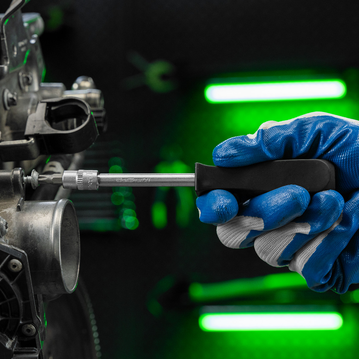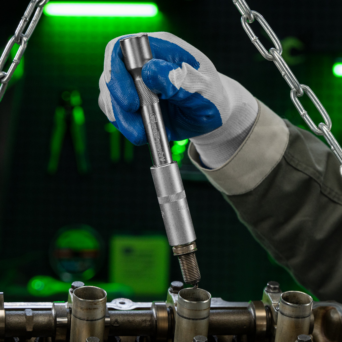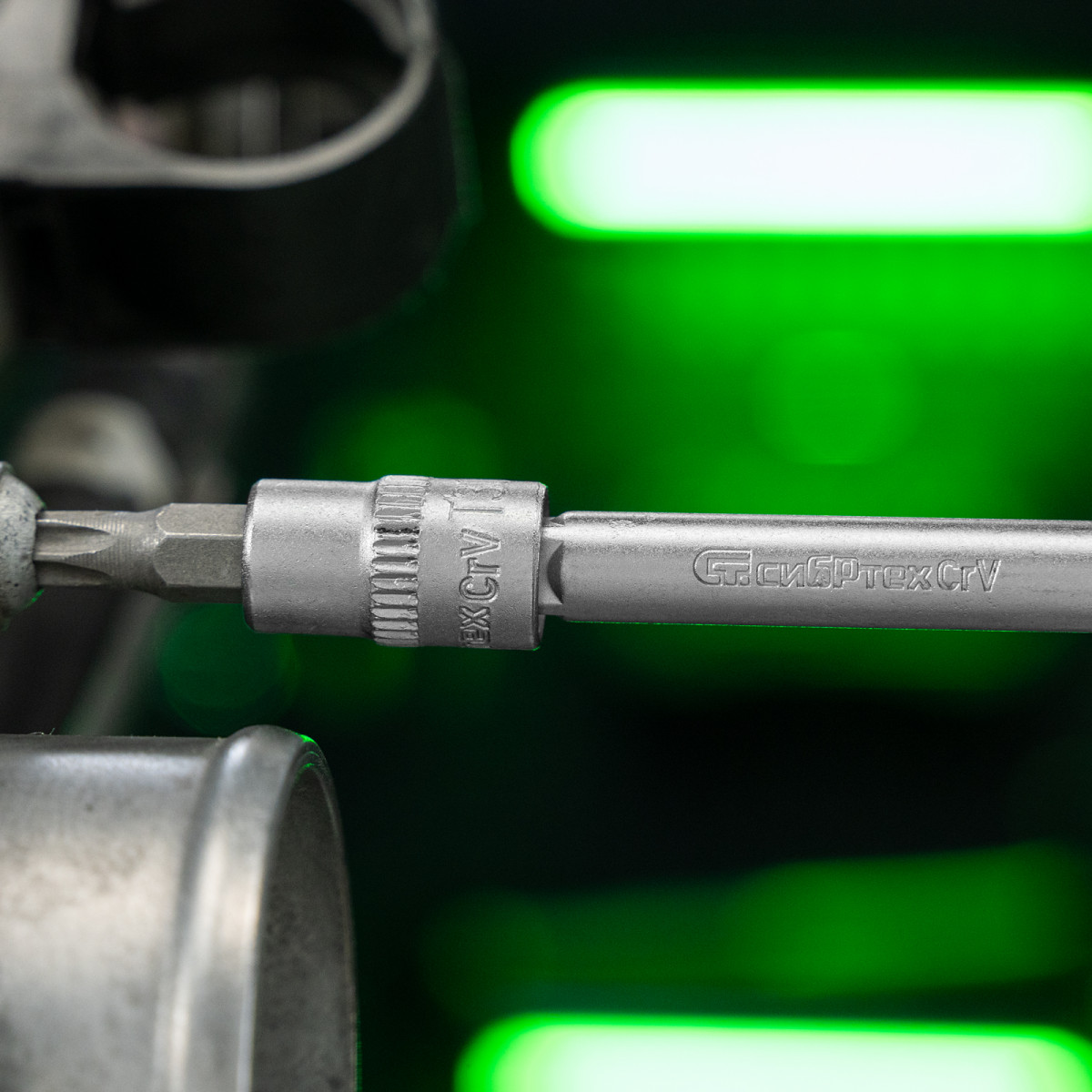 • Прочная фиксация — шариковый замок на трещотках, воротках, шарнирах и удлинителях надежно удерживает головки.