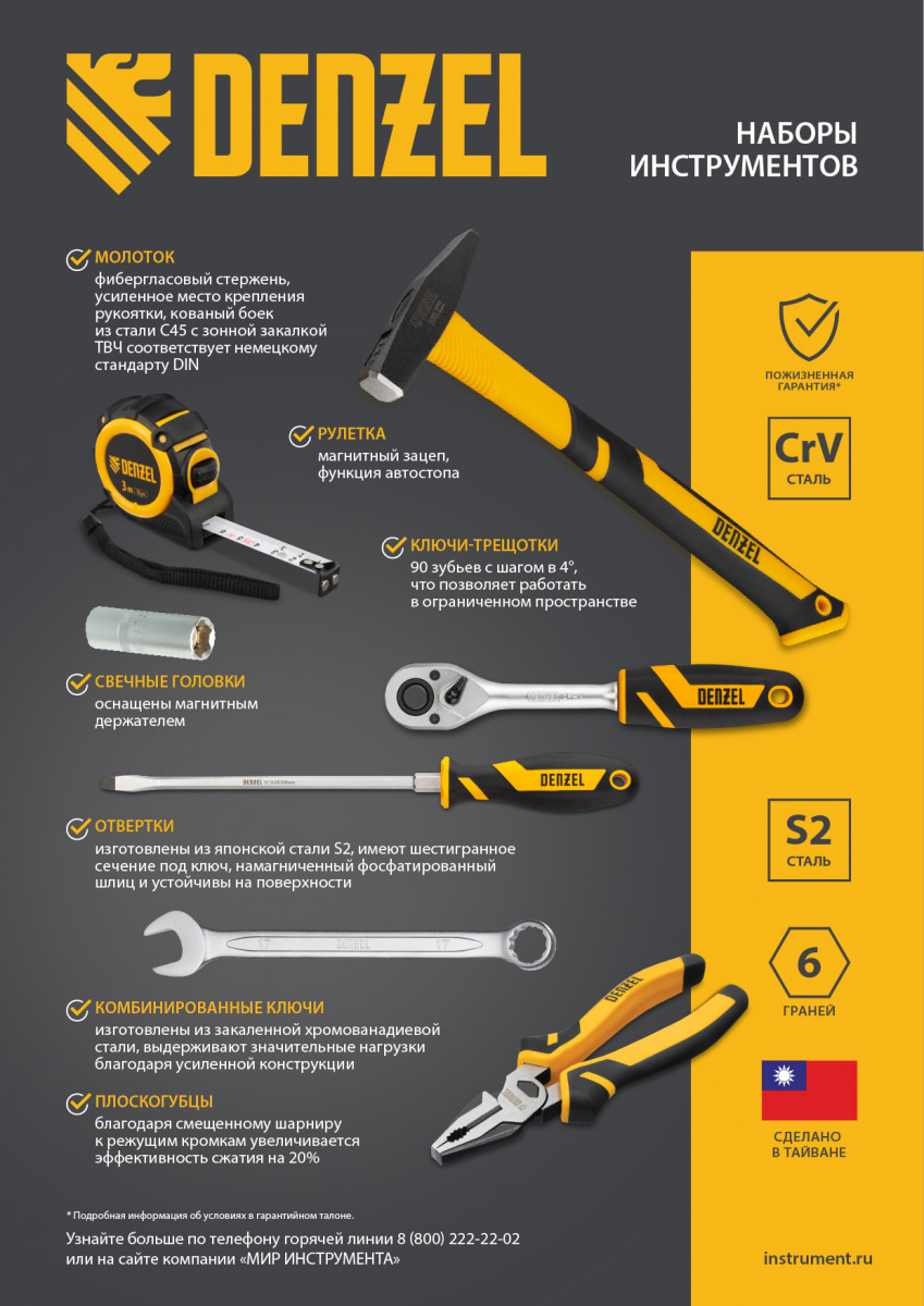 - Подтвержденное качество — на все комбинированные ключи и на торцевые головки с квадратом 1/2″ от 8 мм предоставляется пожизненная гарантия.
