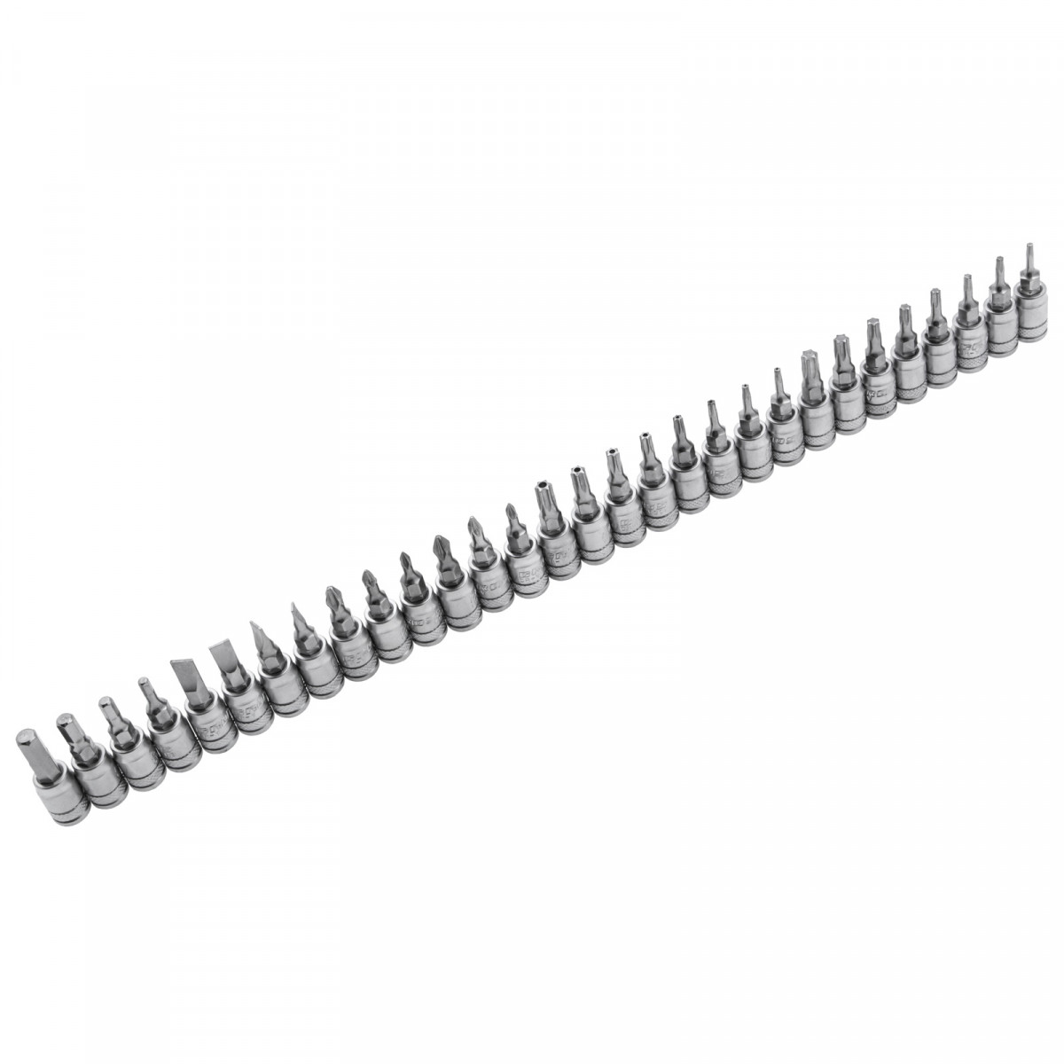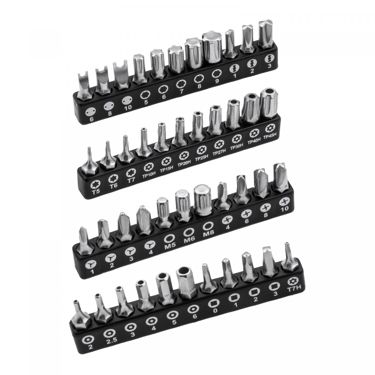 • Исключительная твердость и прочность — биты и шестигранные ключи изготовлены из японской легированной стали S2, остальные элементы набора выполнены из хромованадиевой стали.
