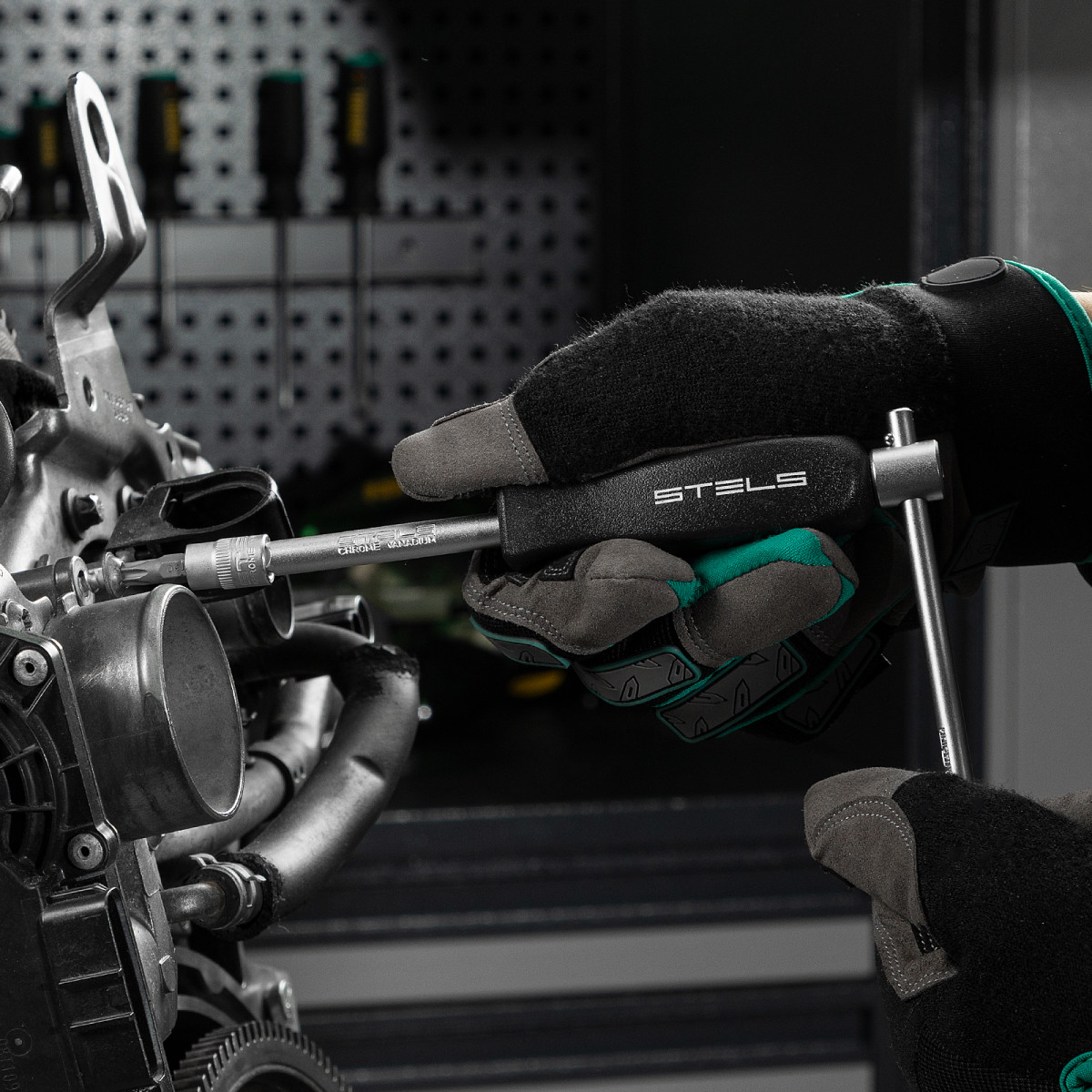 Набор инструментов Stels 14099 в ударопрочным пластиковом кейсе состоит из 47 предметов с присоединительным квадратом 1/4″, из стали CrV и S2, и предназначен для выполнения слесарно-монтажных работ. Включает инструменты и насадки для работы с резьбовыми крепежами, а также удлинители и т-образный вороток, облегчающие работу в труднодоступных местах. Набор предназначен для профессионального использования в автомастерской, будет полезен и для решения бытовых задач.