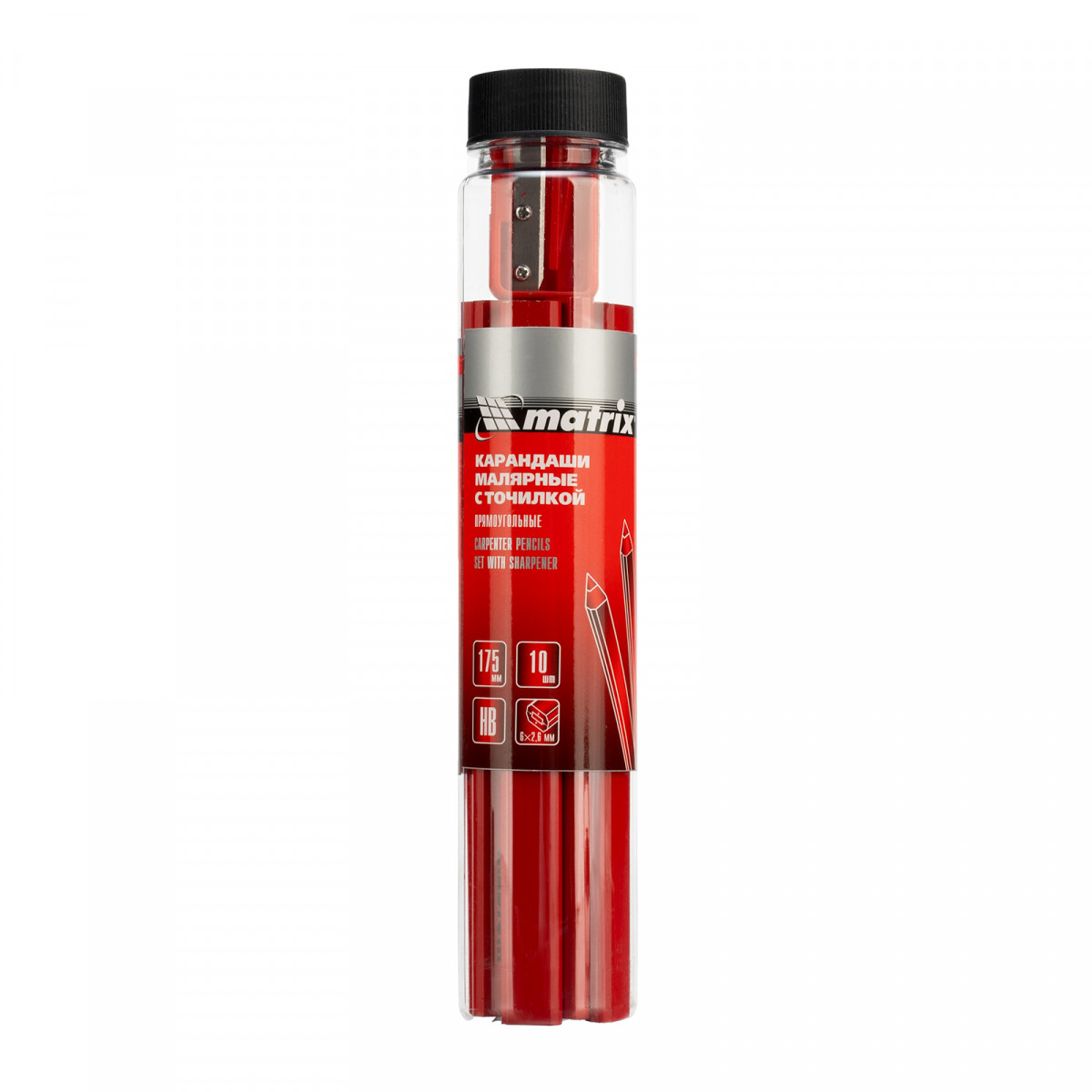 Набор карандашей малярных прямоугольных с точилкой в тубе, 175 мм, 10 шт Matrix