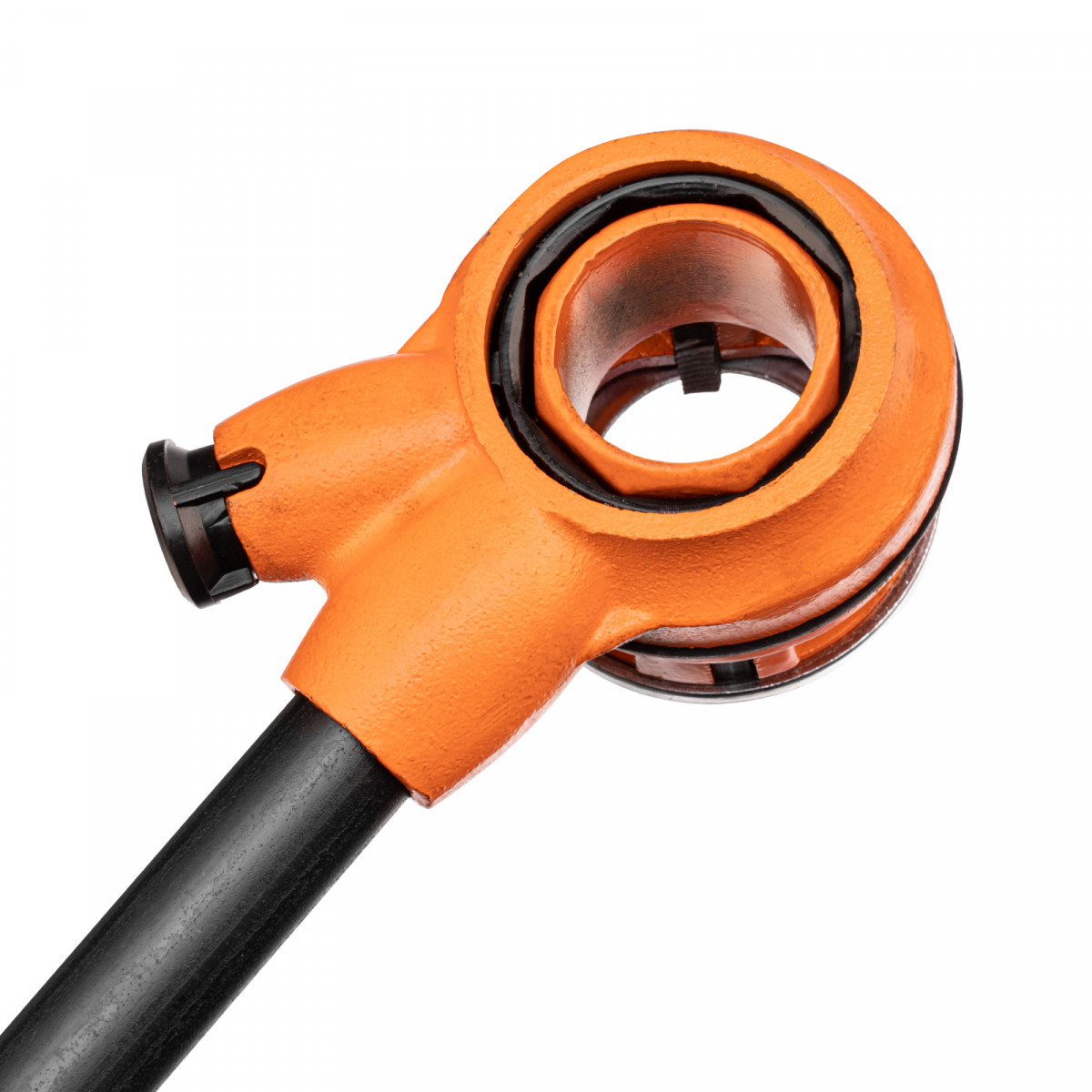 Трещоточный механизм обеспечивает эффективную передачу рабочего усилия и работу в труднодоступных местах.