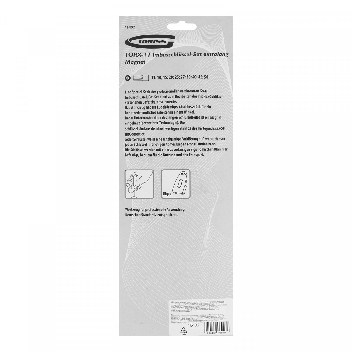 Набор ключей имбусовых Torx -TT, 9 шт: T10-T50, магнит, S2, экстра-длинные, хром/краска 9 шт Gross
