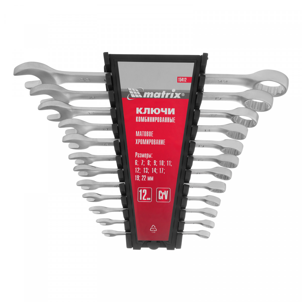 Набор ключей комбинированных, 6-22 мм, 12 шт, CrV, матовый хром Matrix