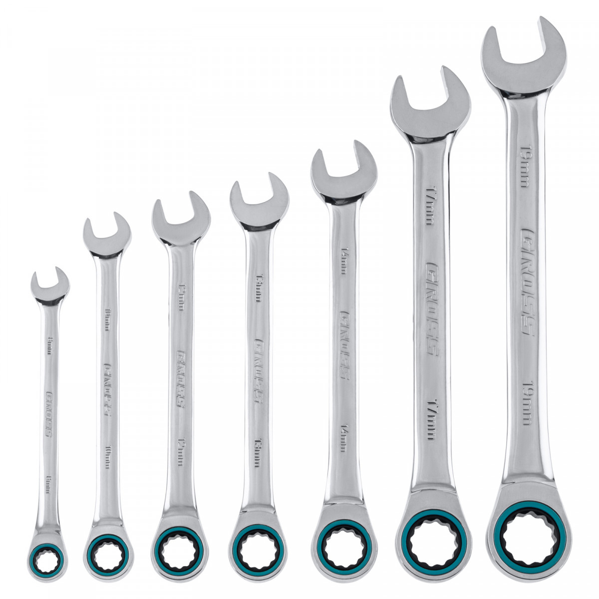 Набор ключей комбинированных с трещоткой, 8-19 мм, 7 шт, CrV Gross