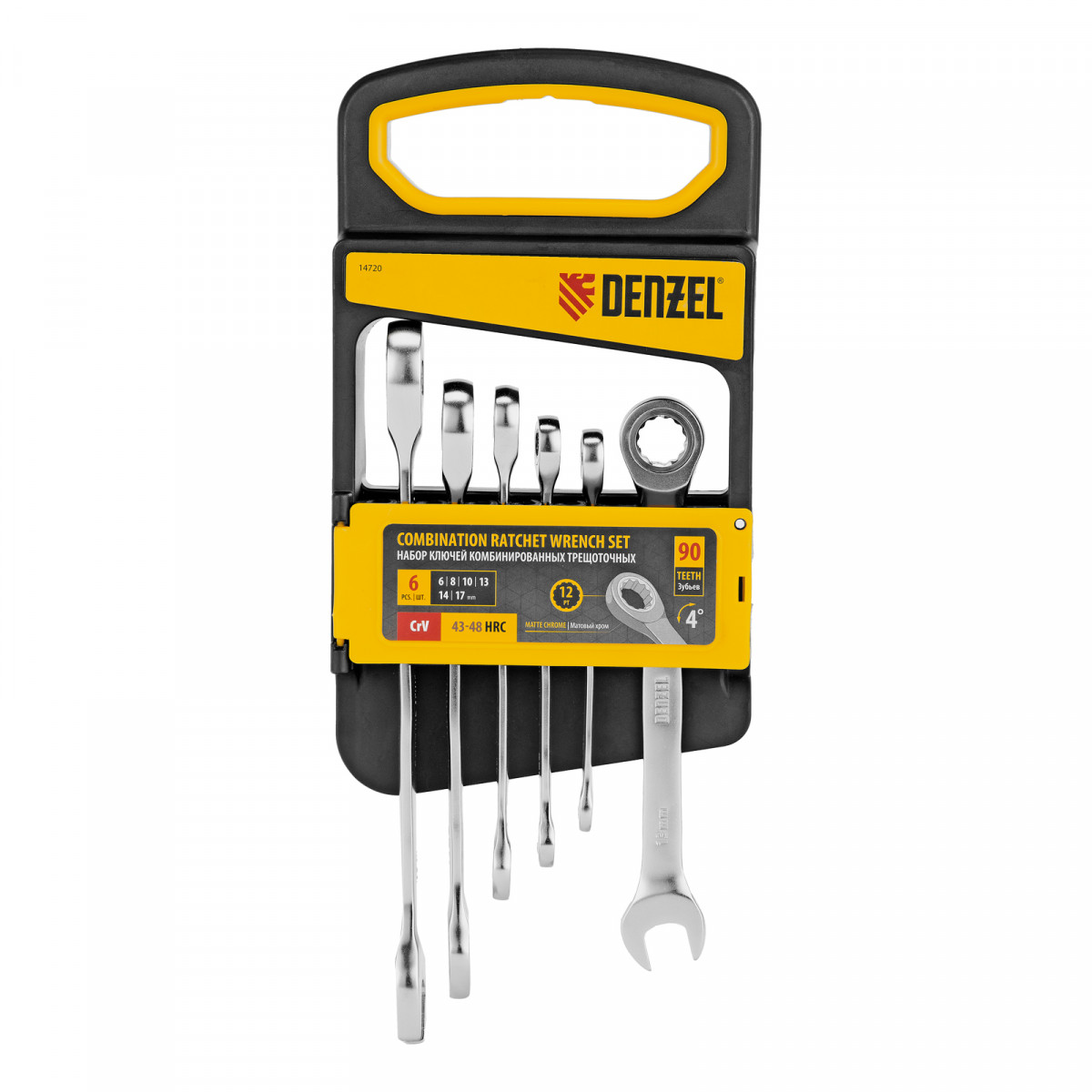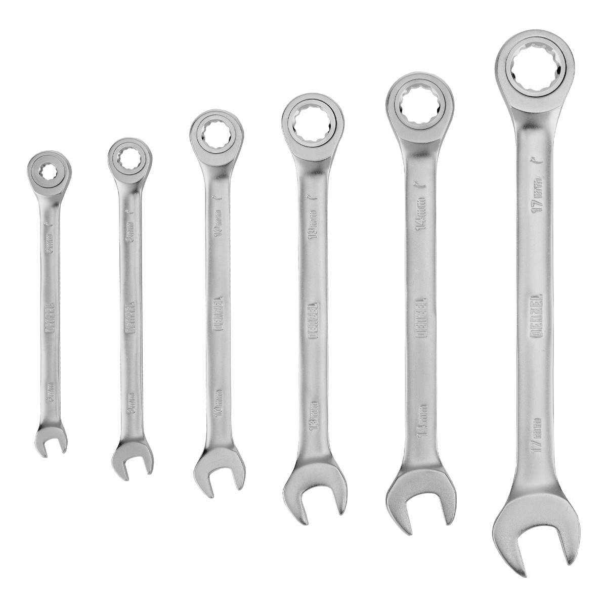 Набор ключей комбинированных трещоточных 6-17 мм, 6 шт., CrV, матовый хром Denzel