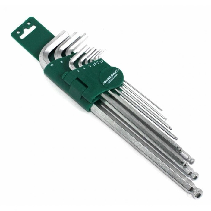 Набор ключей торцевых JONNESWAY шестигранных удлиненных с шаром для изношенного крепежа 9 предметов