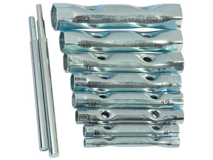 Ключи торцевые двусторонние. Тонкие стенки ключей-трубок позволяют осуществлять монтаж в труднодоступных местах, когда болтовые соединения размещены в значительных углублениях. В набор арт. 13752 входит 8 ключей (6–22 мм) и 2 воротка. В набор арт. 13740 входит 5 ключей (8–17 мм) и 1 вороток. Изготовлены из углеродистой стали. Твердость материала рабочей части ключа – 41 HRc, что соответствует требованиям ГОСТа. Ключи имеют защитное покрытие из цинка. Набор упакован в блистер.