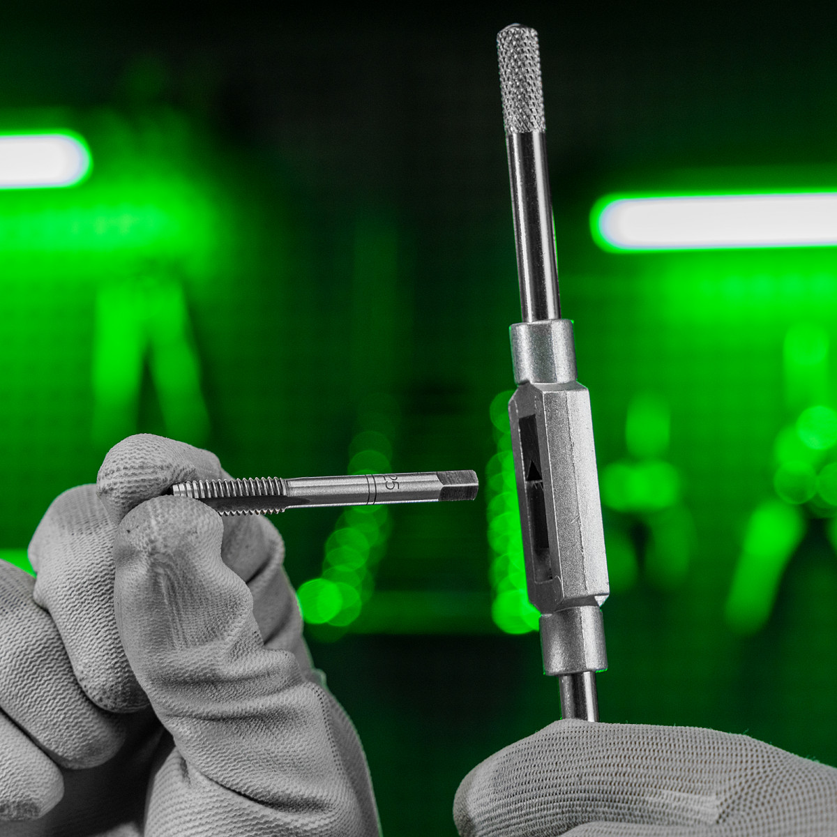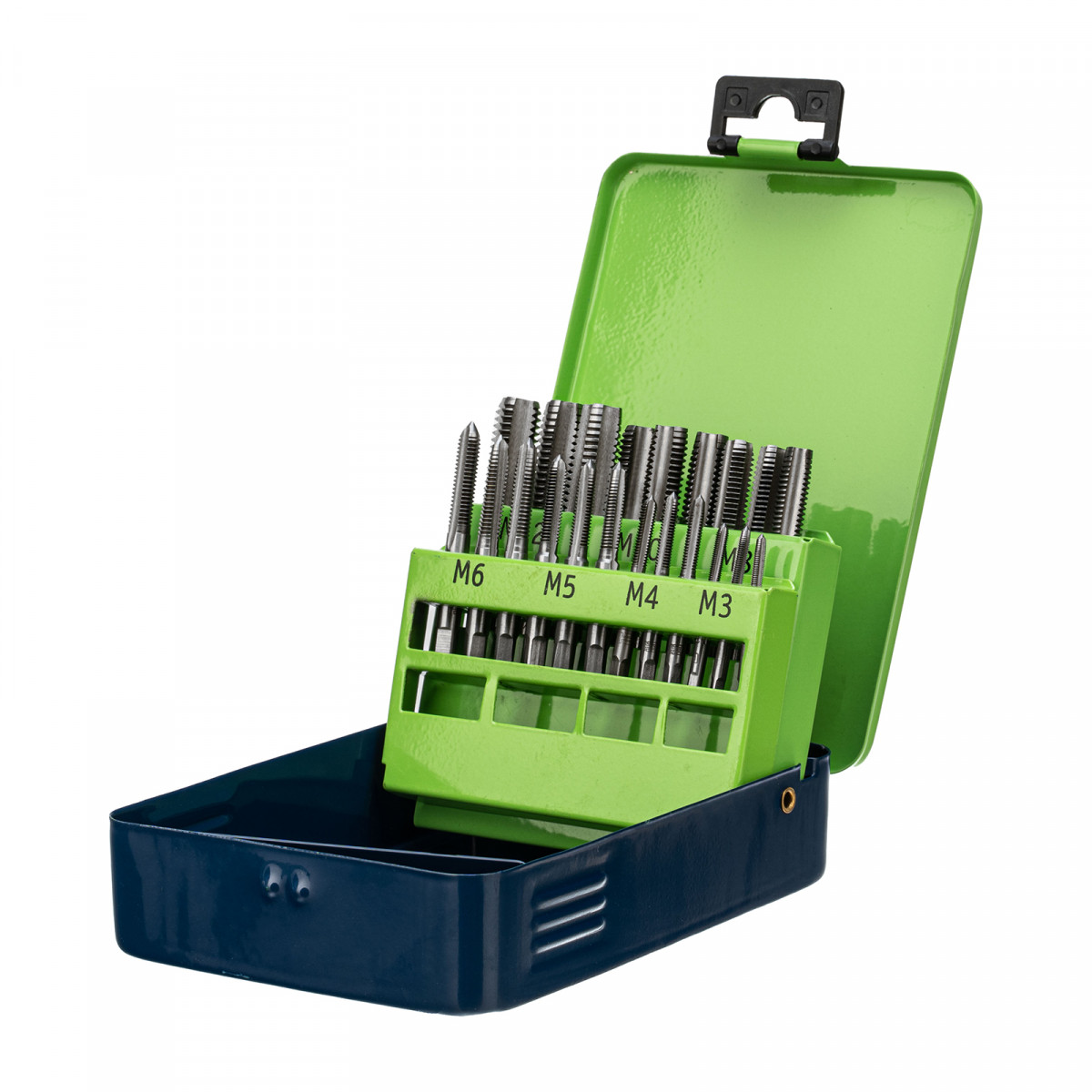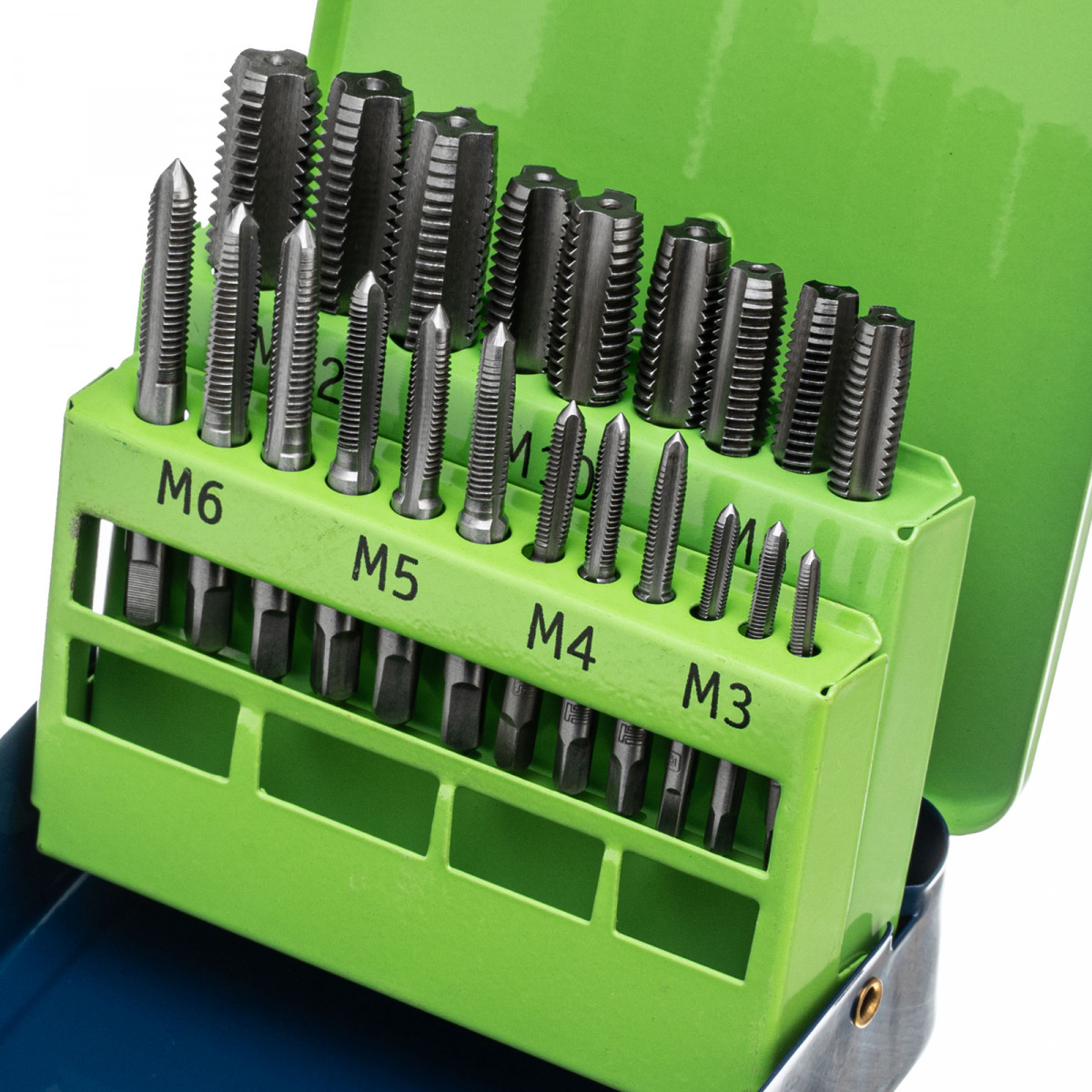 • Высокое качество резьбы — в набор входит по 3 метчика каждого размера: №1 для первичного прохода, №2 для повышения точности витков и №3 для финишной доводки.