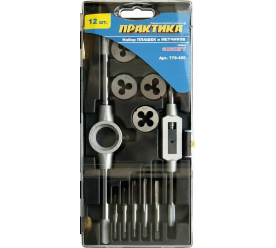 Набор ПРАКТИКА 779-455 метчики, плашки, воротки, 12пр.