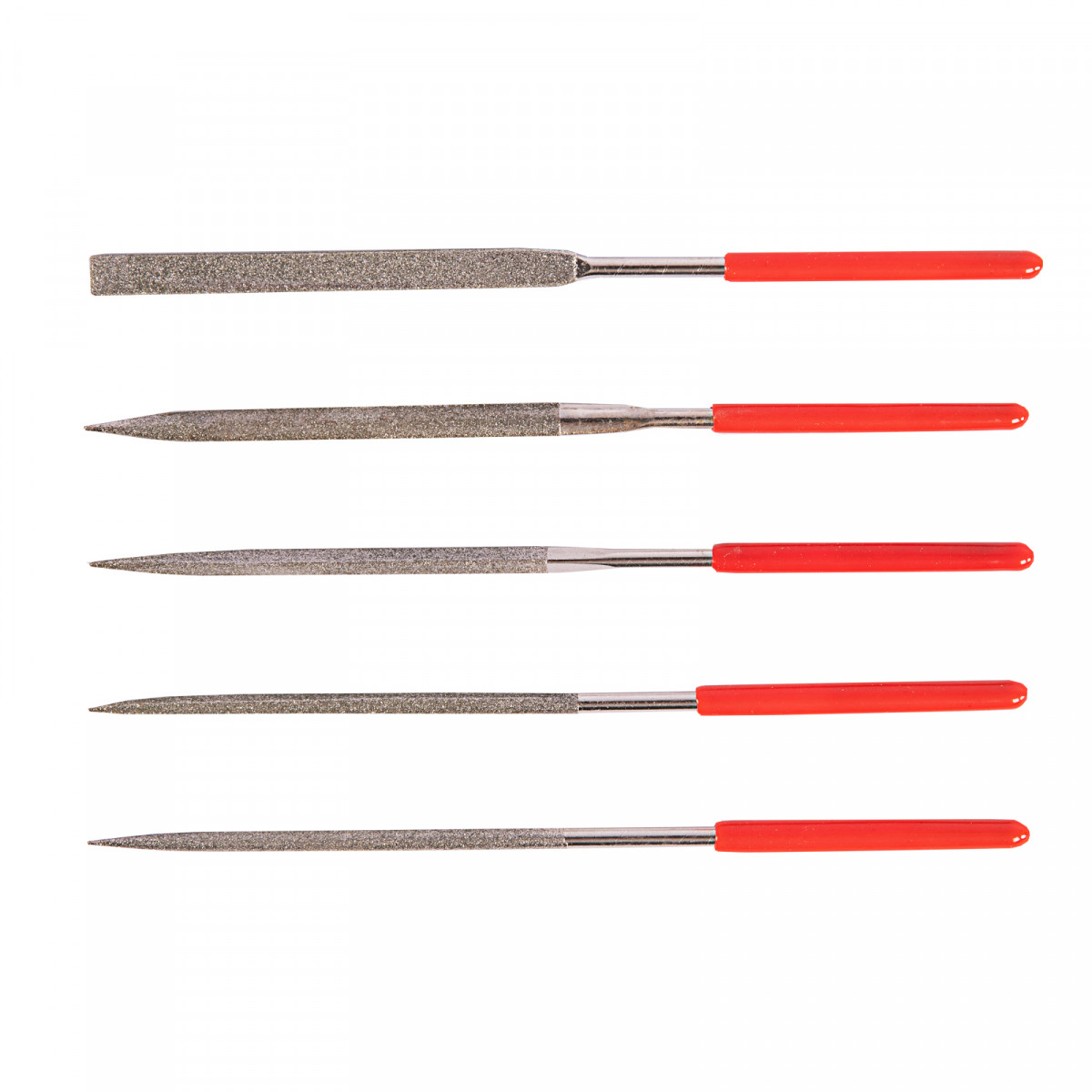Плоский надфиль - 1 штКруглый надфиль - 1 штТрехгранный надфиль - 1 штПолукруглый надфиль - 1 штКвадратный надфиль - 1 шт