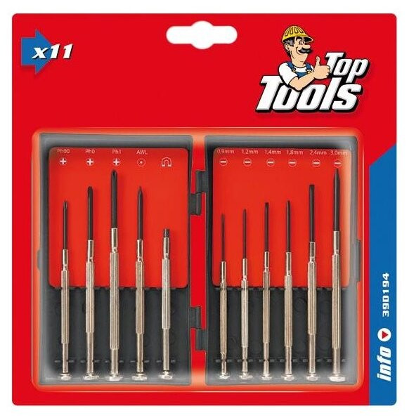 • Отвертки шлицевые: 0.9 x 23 мм, 1.2 x 23 мм, 1.4 x 24 мм, 1.8 x 24 мм, 2.4 x 25 мм, 3.0 x 29 мм;