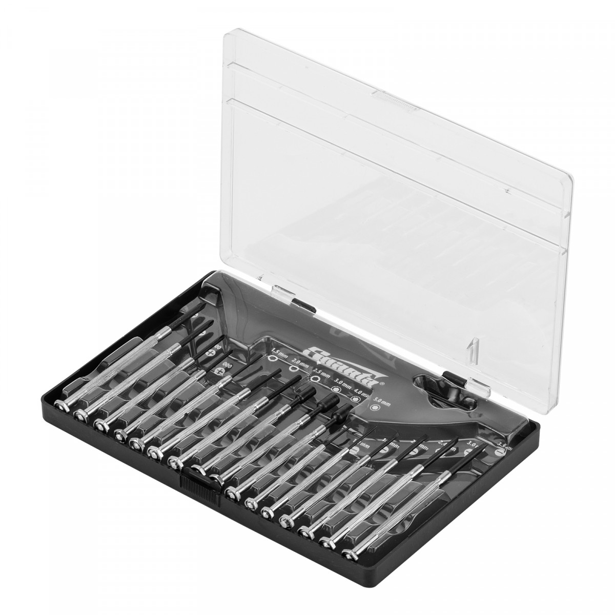 • Маркировка типоразмеров в боксе позволяет быстро подобрать нужную отвертку.