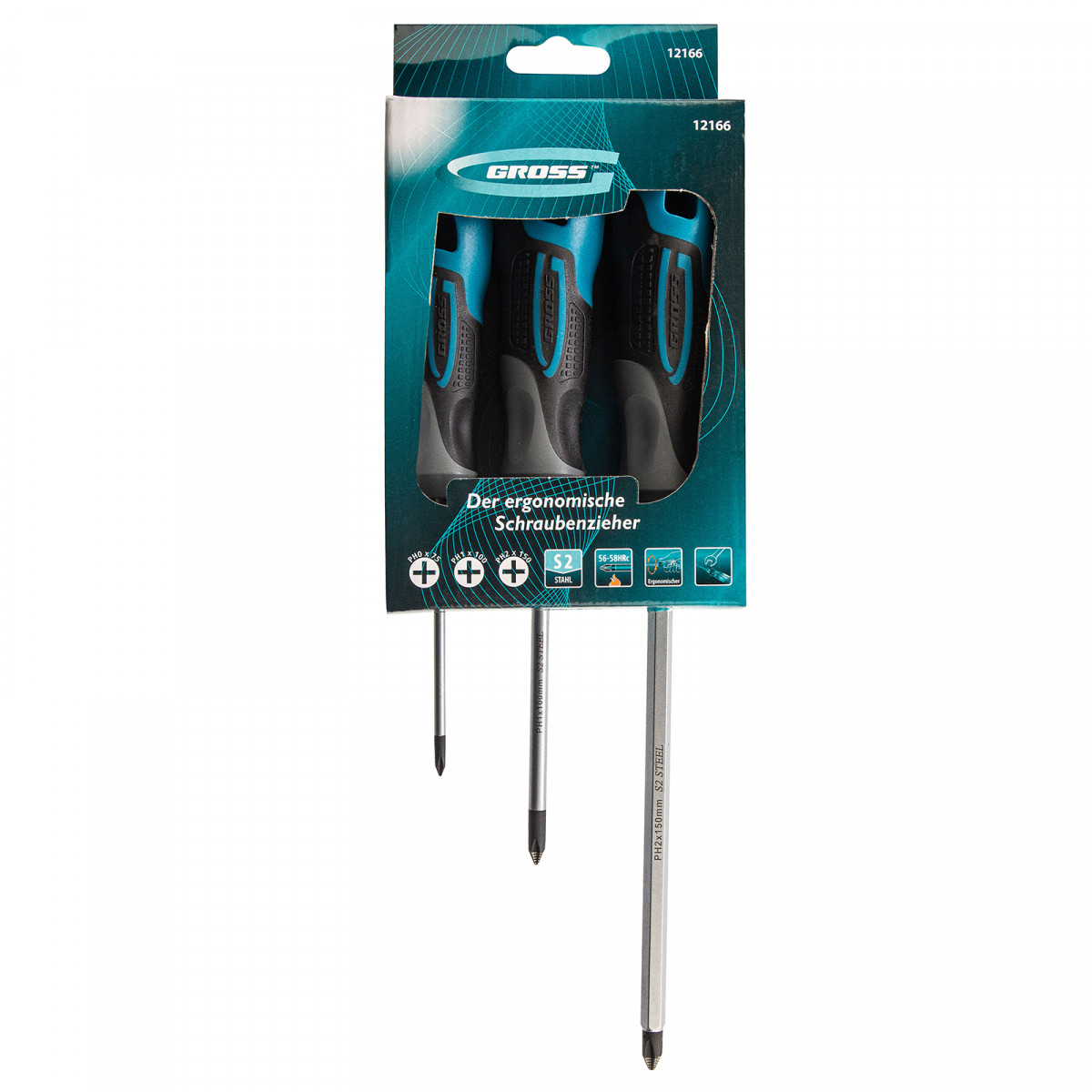 Набор отверток PH, 3 шт, S2, трехкомпонентная рукоятка Gross