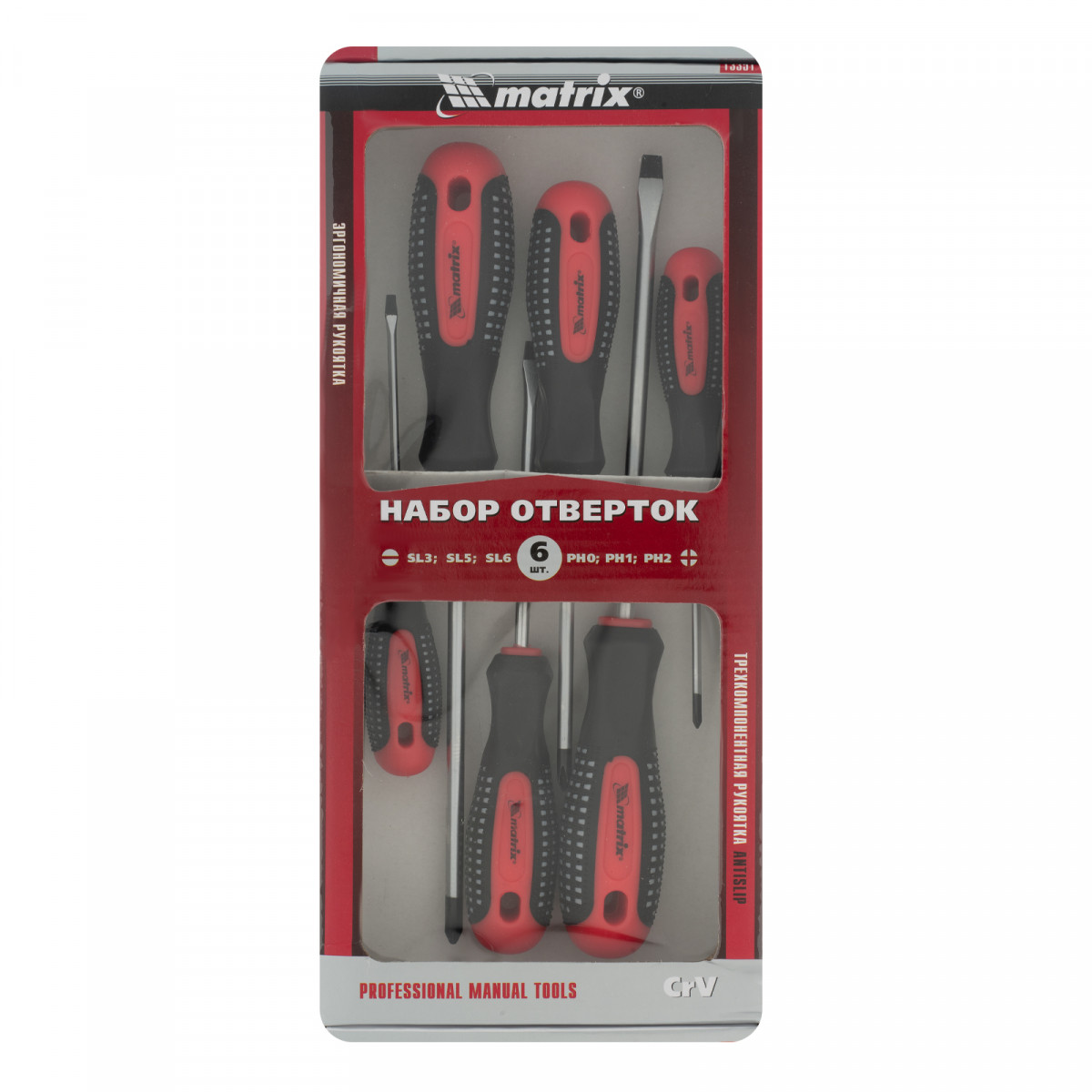 Набор профессиональных отверток Fusion, CrV, трехкомпонентная рукоятка antislip, 6 шт Matrix