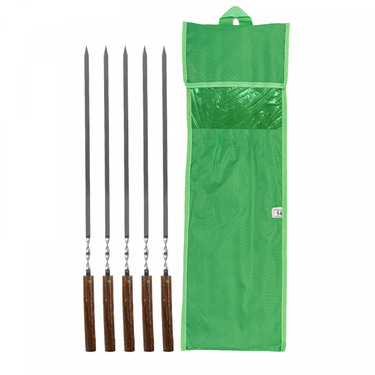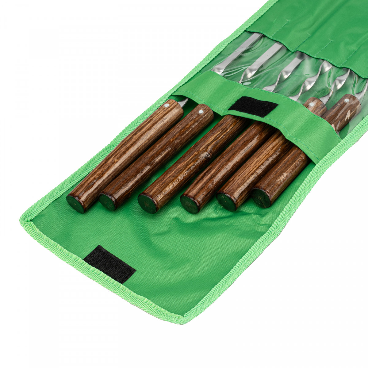 Набор шампуров плоских, 650 мм, с цельной деревянной рукояткой, в чехле, 6 шт, Camping Palisad