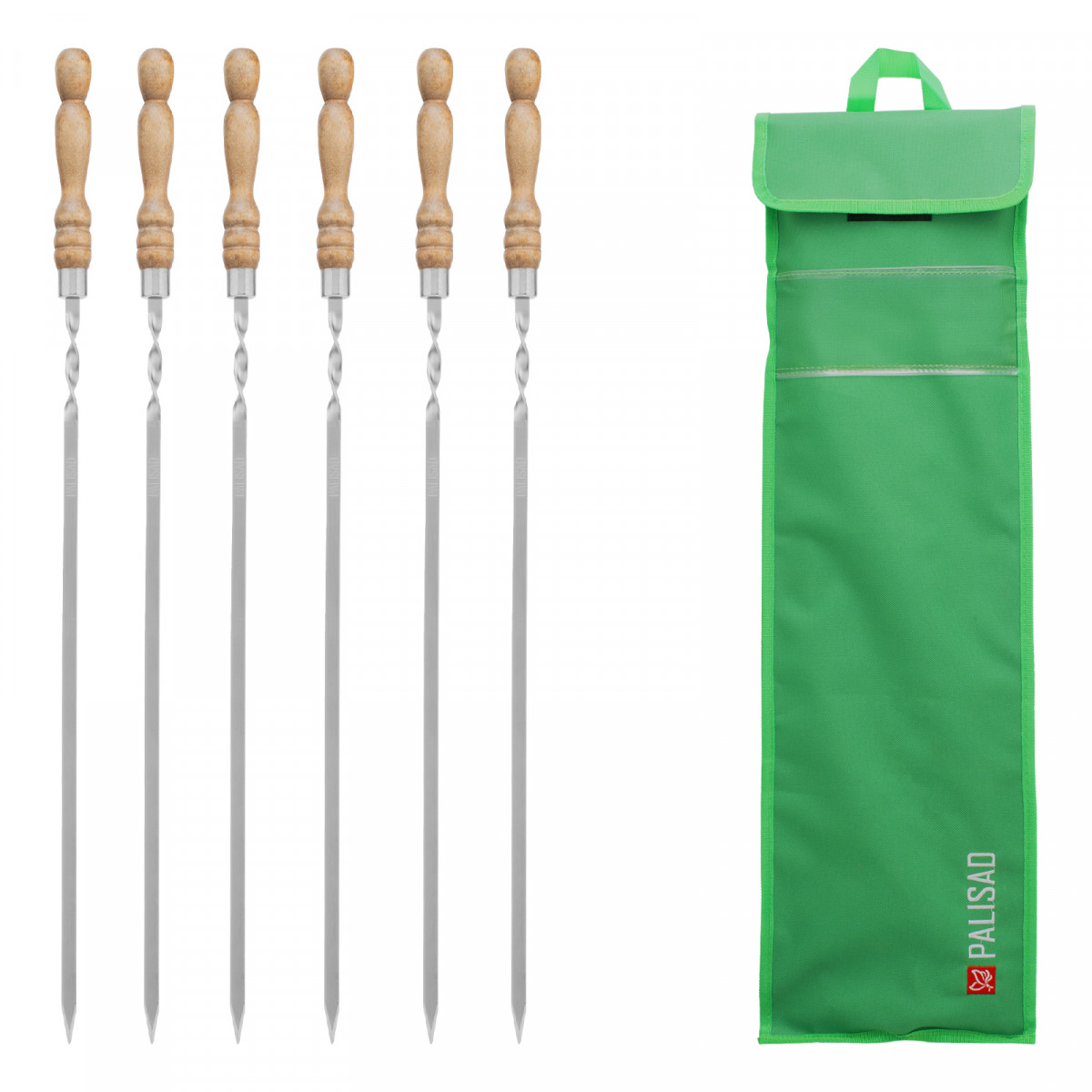 Набор шампуров плоских, 650 мм, с деревянной рукояткой, в чехле, 6 шт., Camping// Palisad