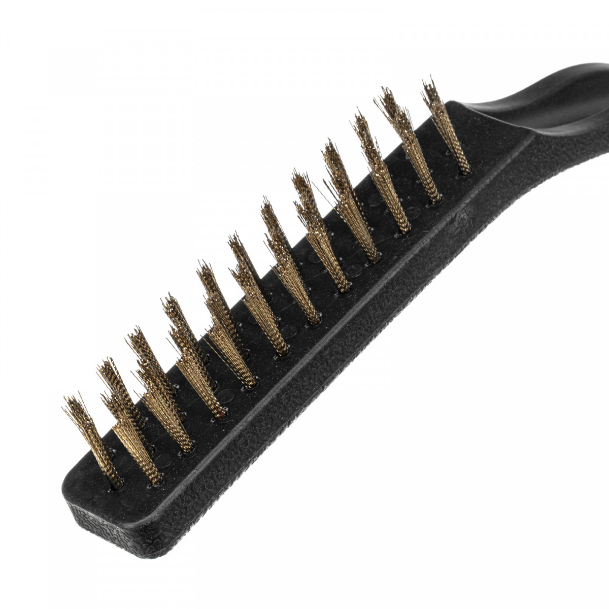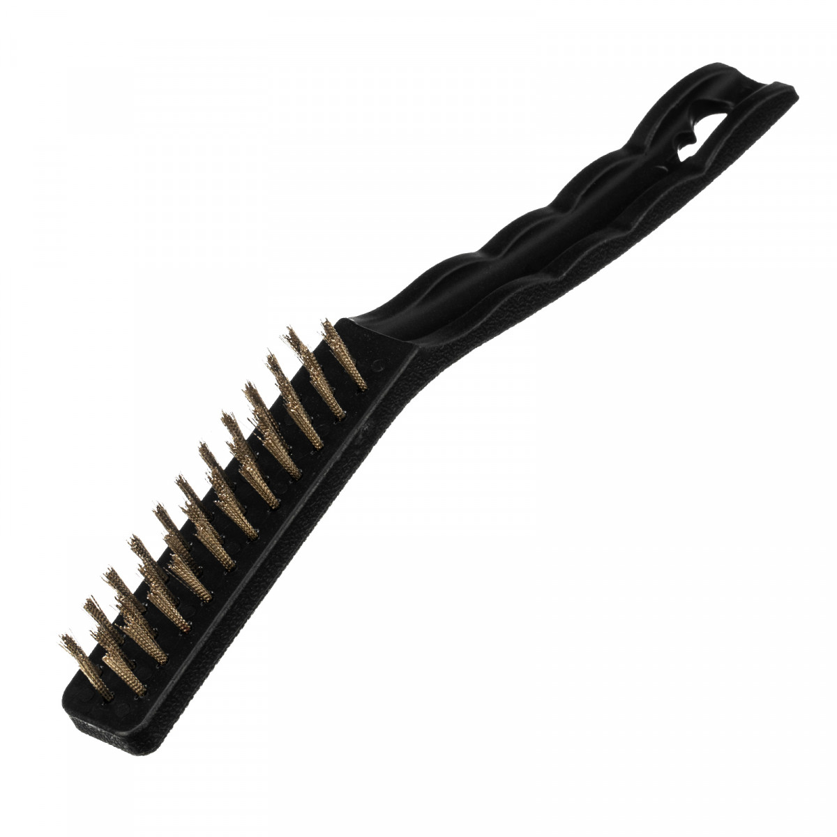 • Высокий ресурс — витая стальная проволока устойчива к деформации, латунированное покрытие защищает щетину от коррозии.