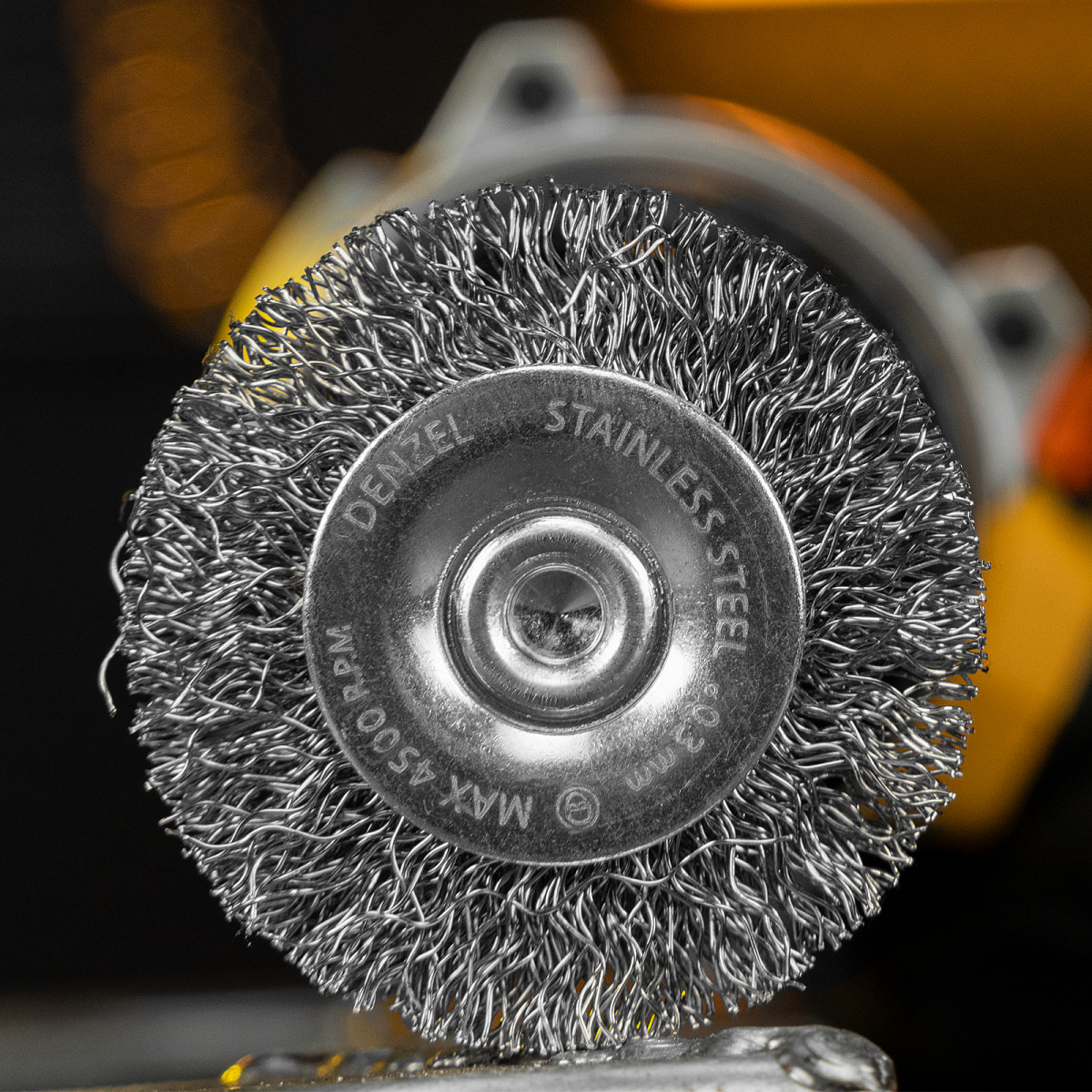 Набор щеток для дрели, 1 Плоская 50мм, 2 Чашки 25-50мм, шпилька, нерж. вит. проволока Denzel