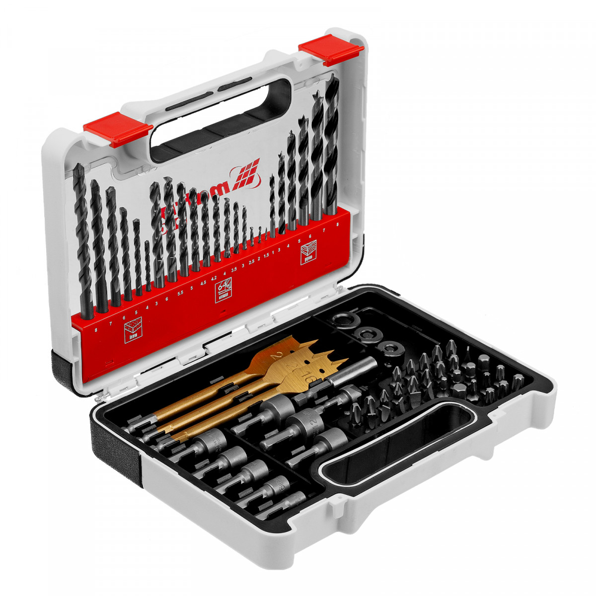 Комбинированный набор Matrix PRO 725671 — универсальное решение для мастеров, т. к. он содержит 71 предмет: отверточные биты (30 шт.) и адаптер к ним, шестигранный ключ, зенковку, стопорные кольца, 8 торцевых головок, 3 перовых сверла, сверла по дереву 3-8 мм, сверла по бетону 3-8 мм и сверла по металлу 1-6 мм. Оснастка подходит как для бытового использования, так и решения профессиональных задач.