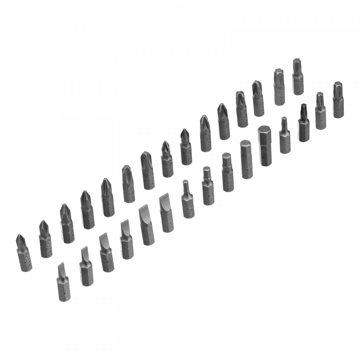 • Прочность и долговечность — биты, торцевые головки и адаптер выполнены из хромованадиевой стали, сверла по металлу из стали Р6М5, а сверла по дереву — из стали 45.