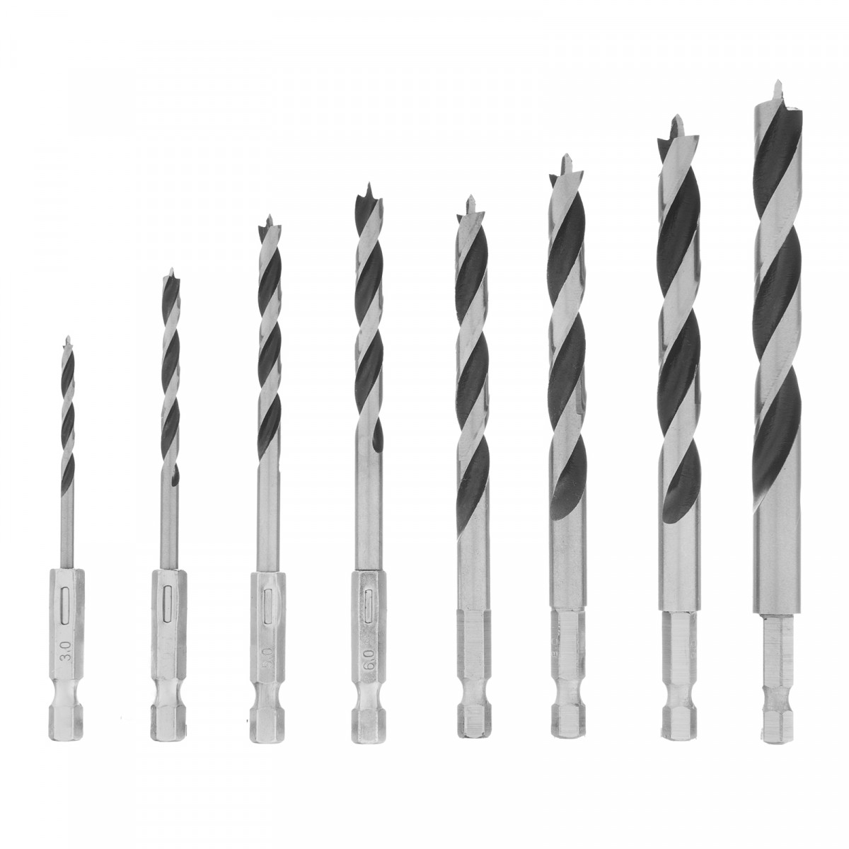 Набор сверл по дереву, 3-4-5-6-7-8-9-10 мм, 8 шт, шестигранный хвостовик, пластиковый кейс, Matrix