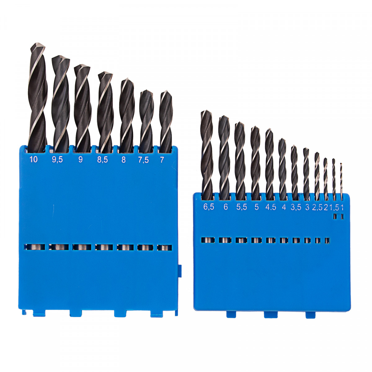 Набор сверл по металлу, 1-10 мм (через 0.5 мм) 19 шт, Р6М5, прокат, цилиндрический хвостовик Барс