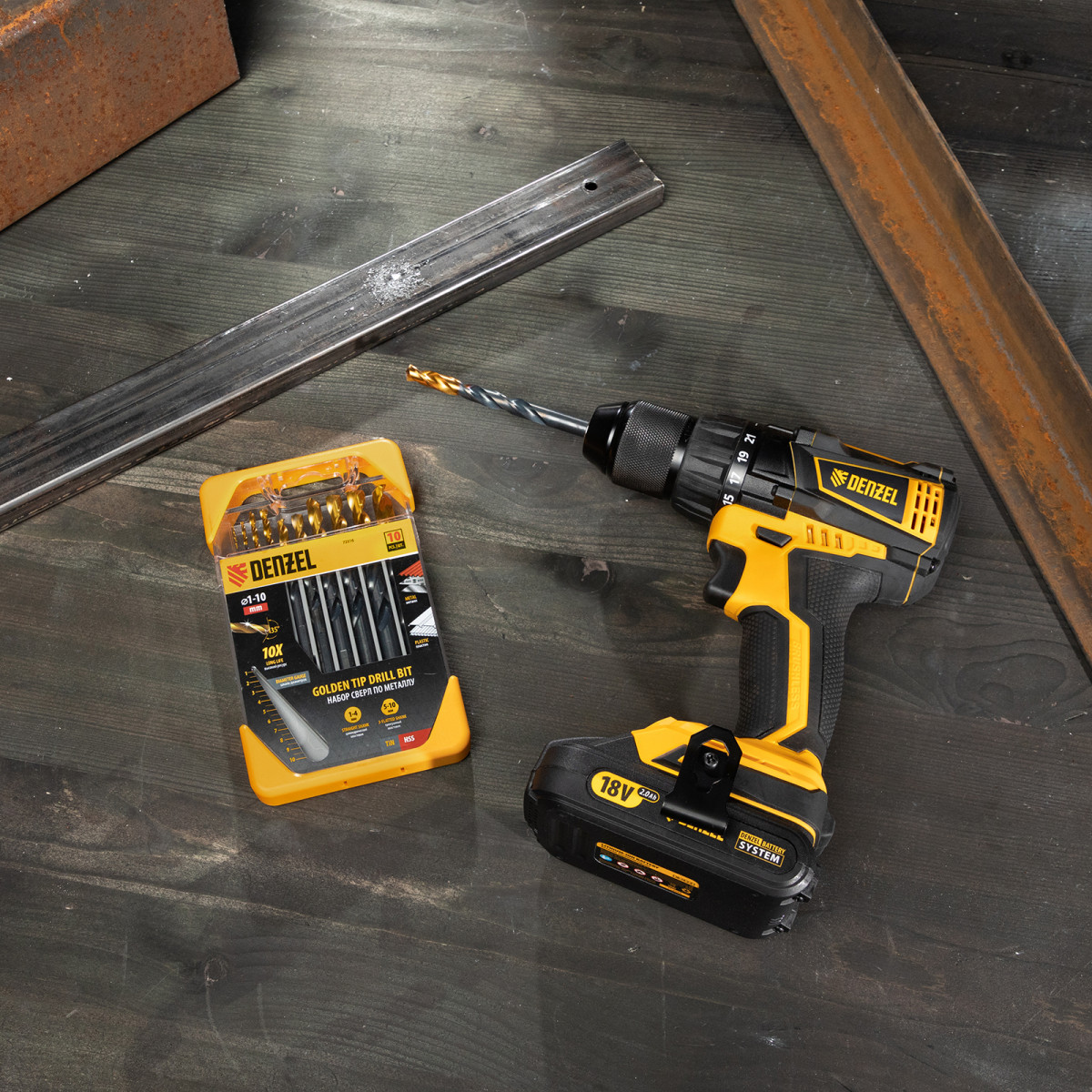 Набор сверл по металлу, 1-10 мм, HSS-Tin, Golden Tip, 10 шт Denzel