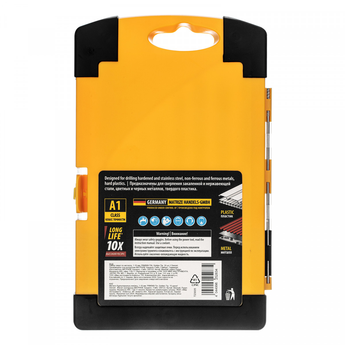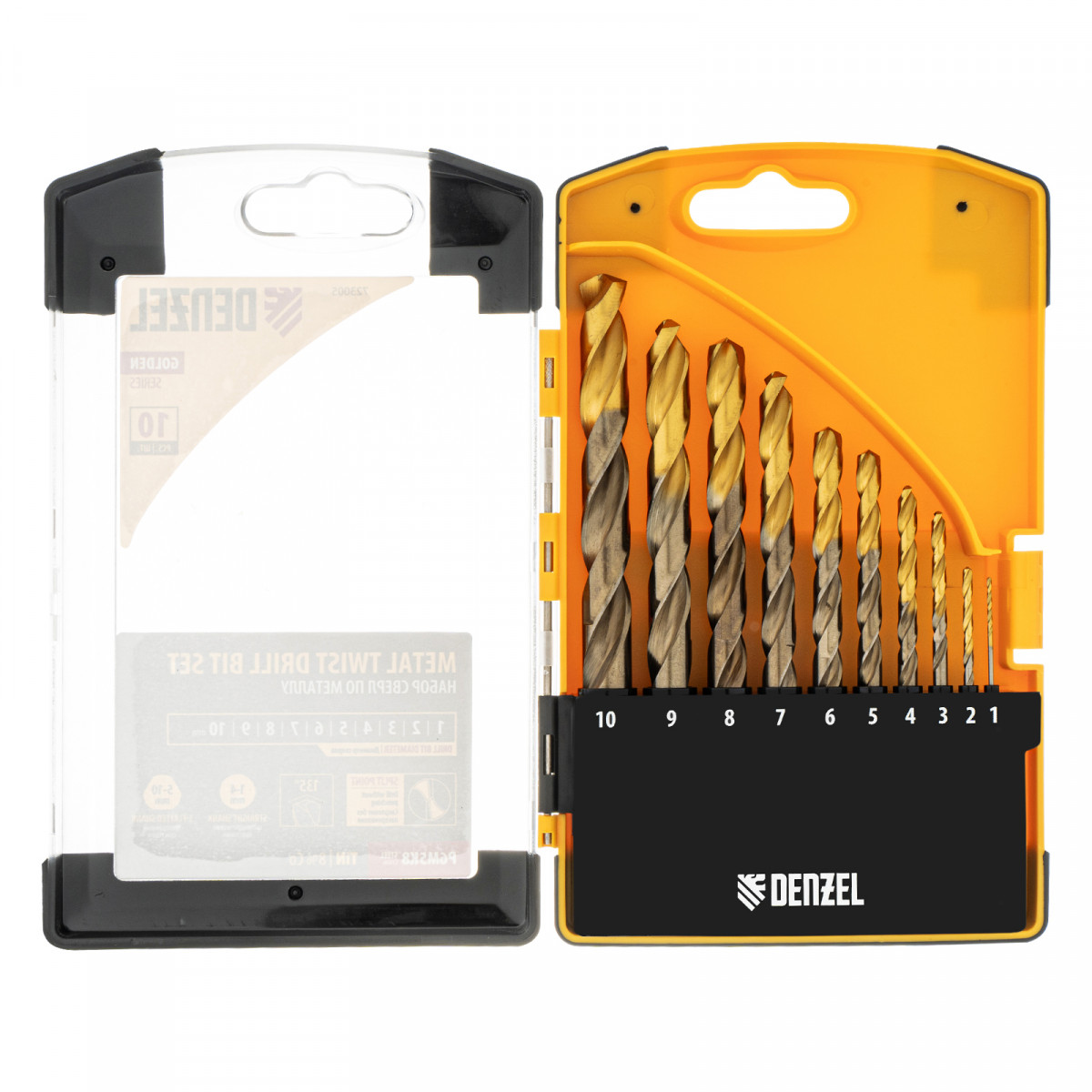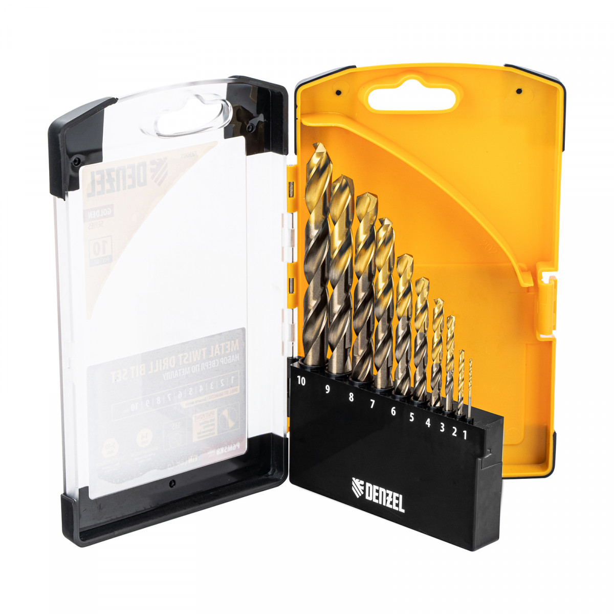 Набор сверл по металлу, 1-10 мм, Р6М5К8-TiN, Golden Tip, 10 шт Denzel