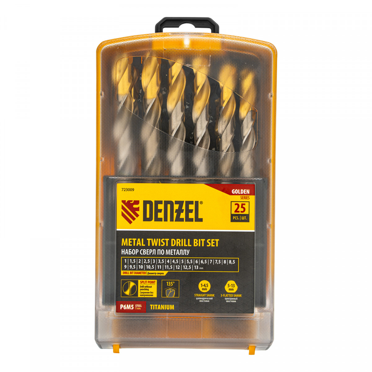 Набор сверл по металлу, 1-13 мм, Р6М5-TiN, Golden Tip, 25 шт Denzel
