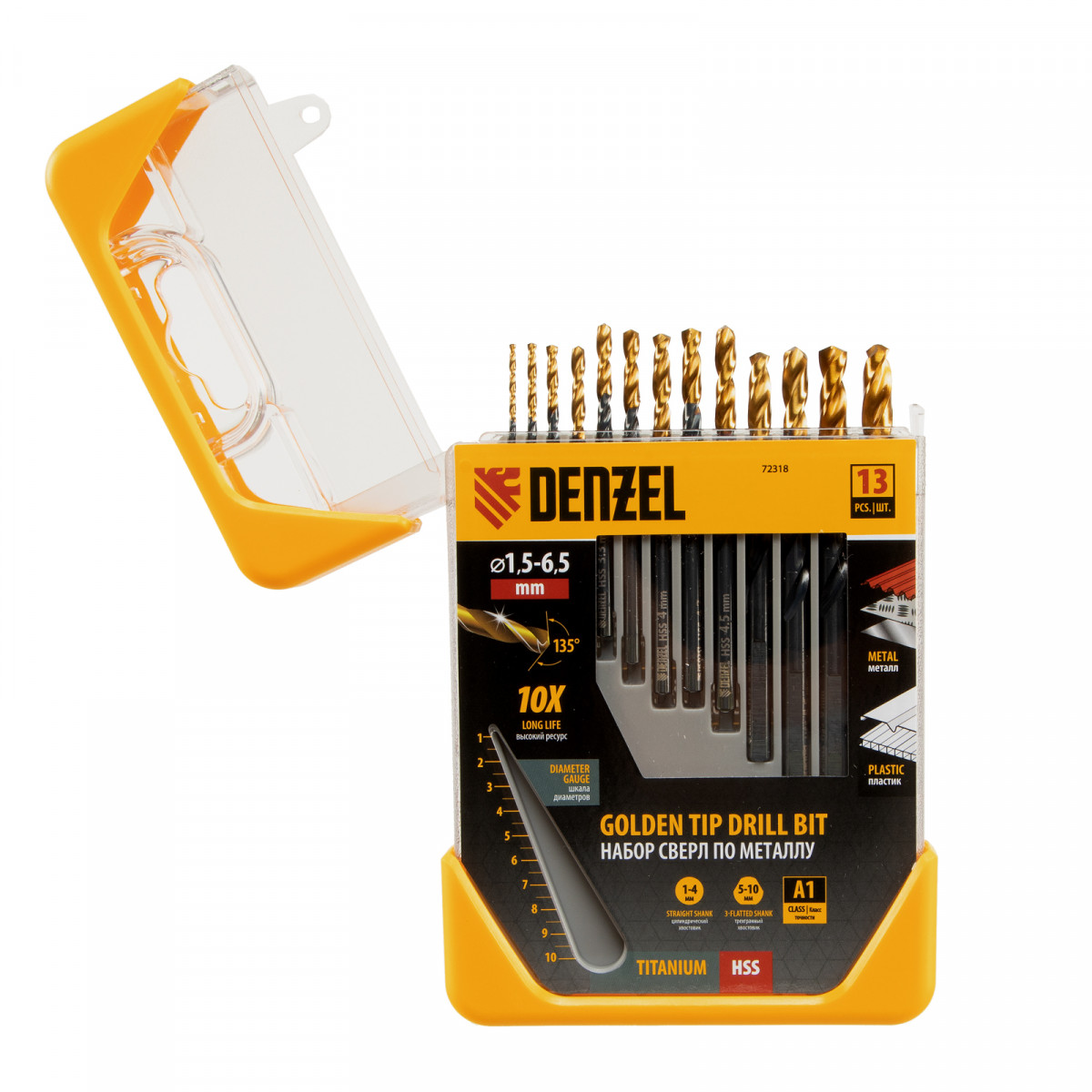 Набор сверл по металлу, 1,5-6,5 мм, HSS-Tin, Golden Tip, 13 шт Denzel