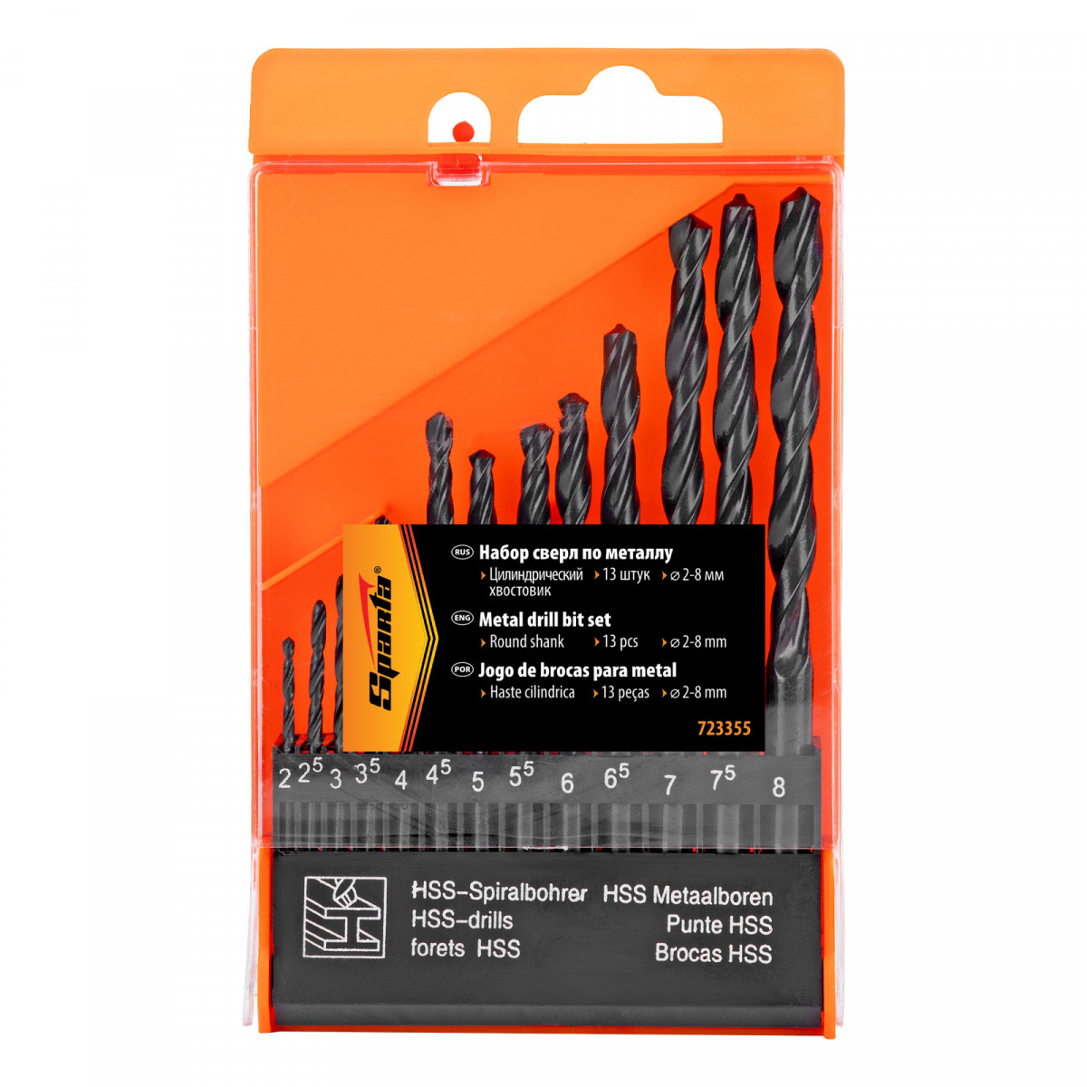 Набор сверл по металлу, 2-8 мм, (через 0.5 мм) HSS 13 шт, цилиндрический хвостовик Sparta