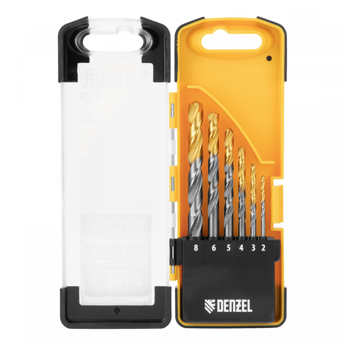 Набор сверл по металлу, 2-8мм, Р6М5К8-TiN, Golden Tip, 6 шт Denzel
