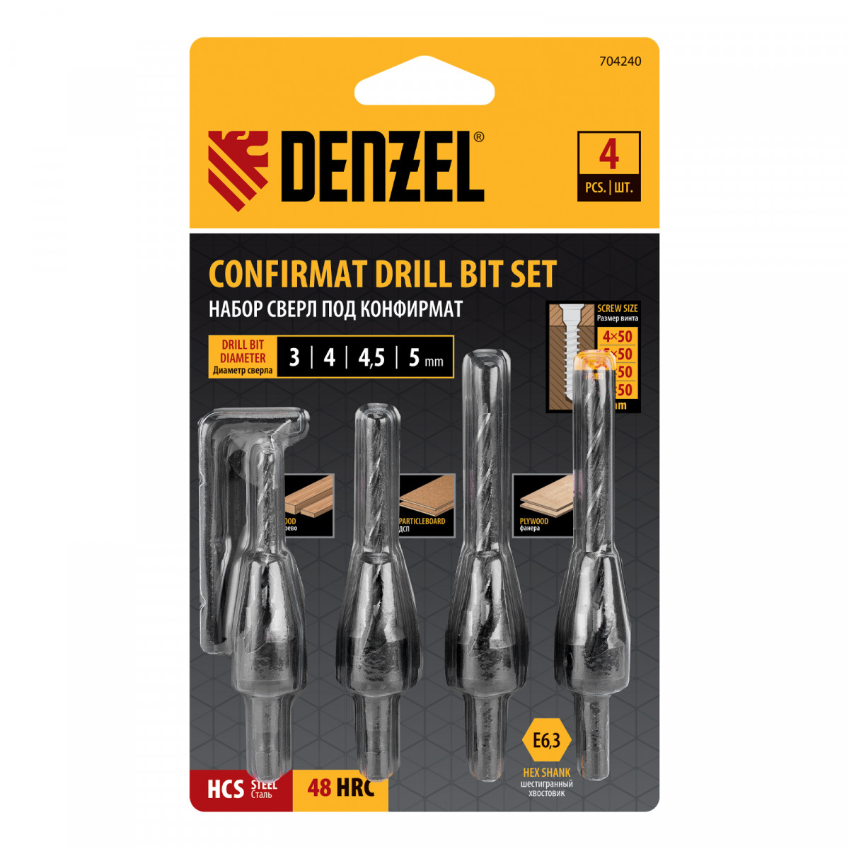 Набор сверл под конфирмат, 3-5 мм, 4 шт Denzel