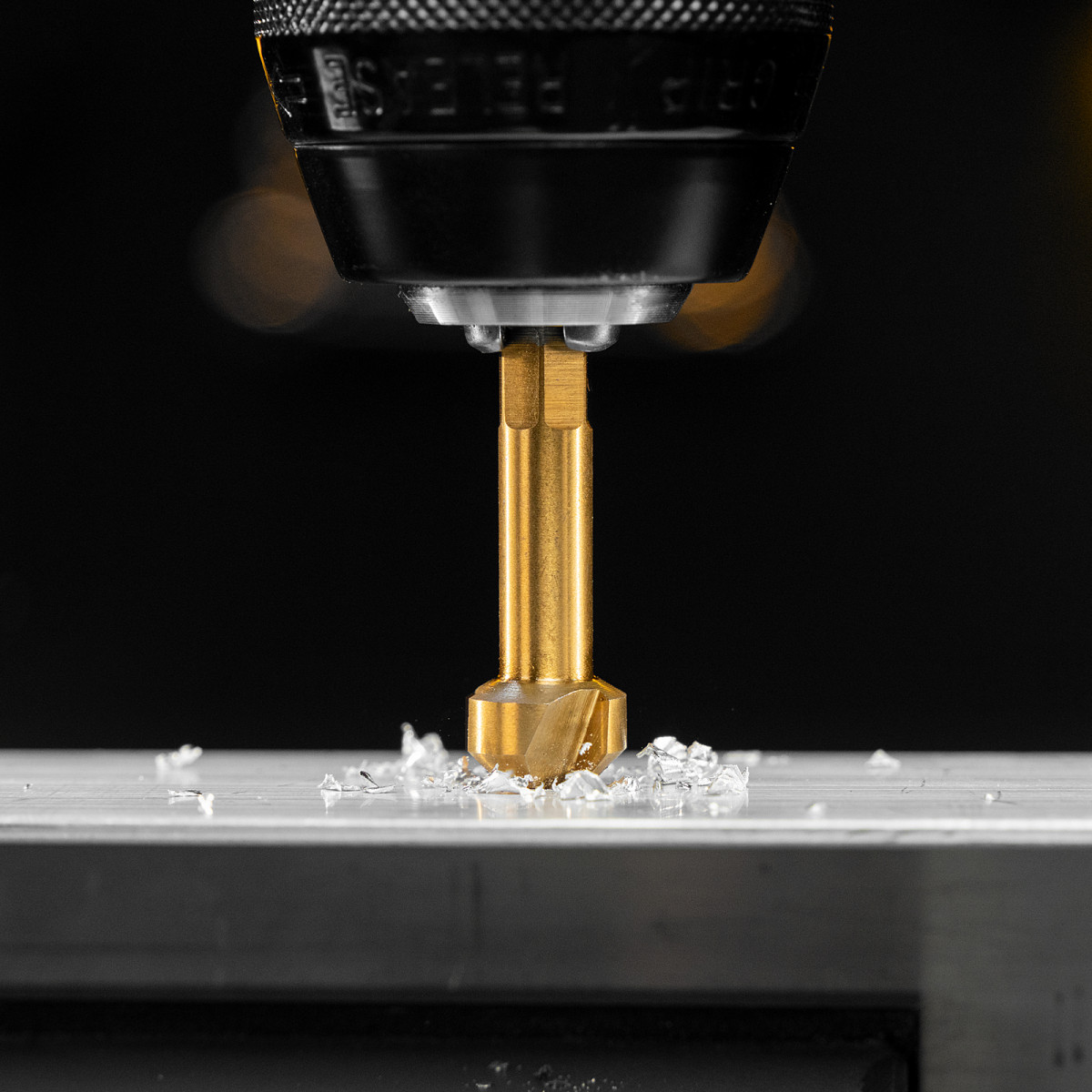 - Удобное хранение и транспортировка — зенковки упакованы в прочный металлический кейс.