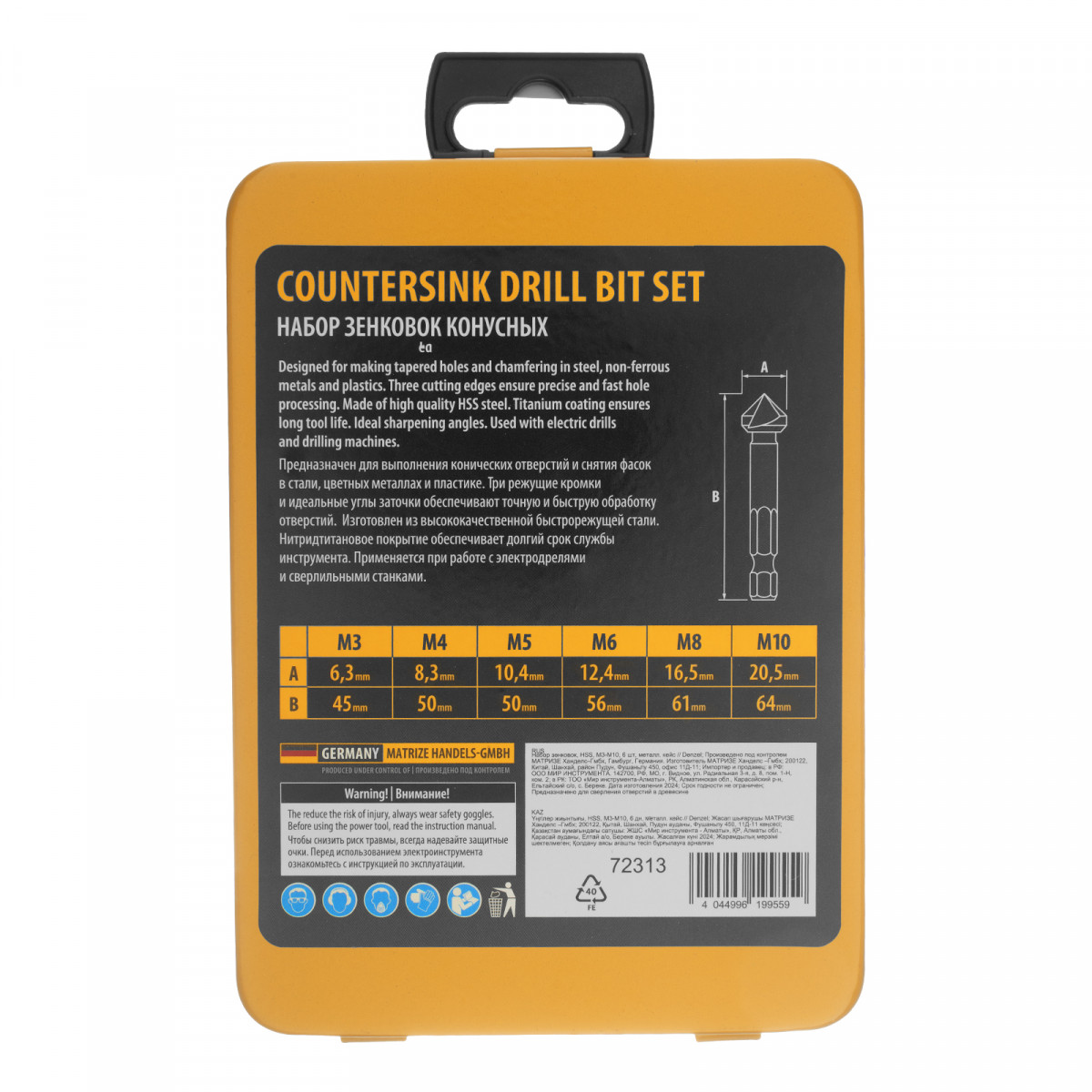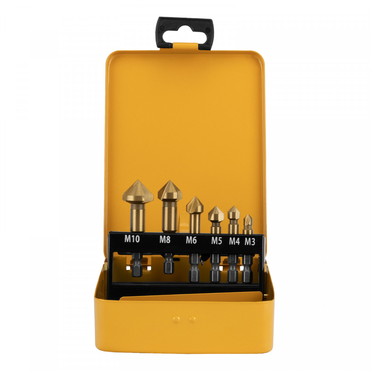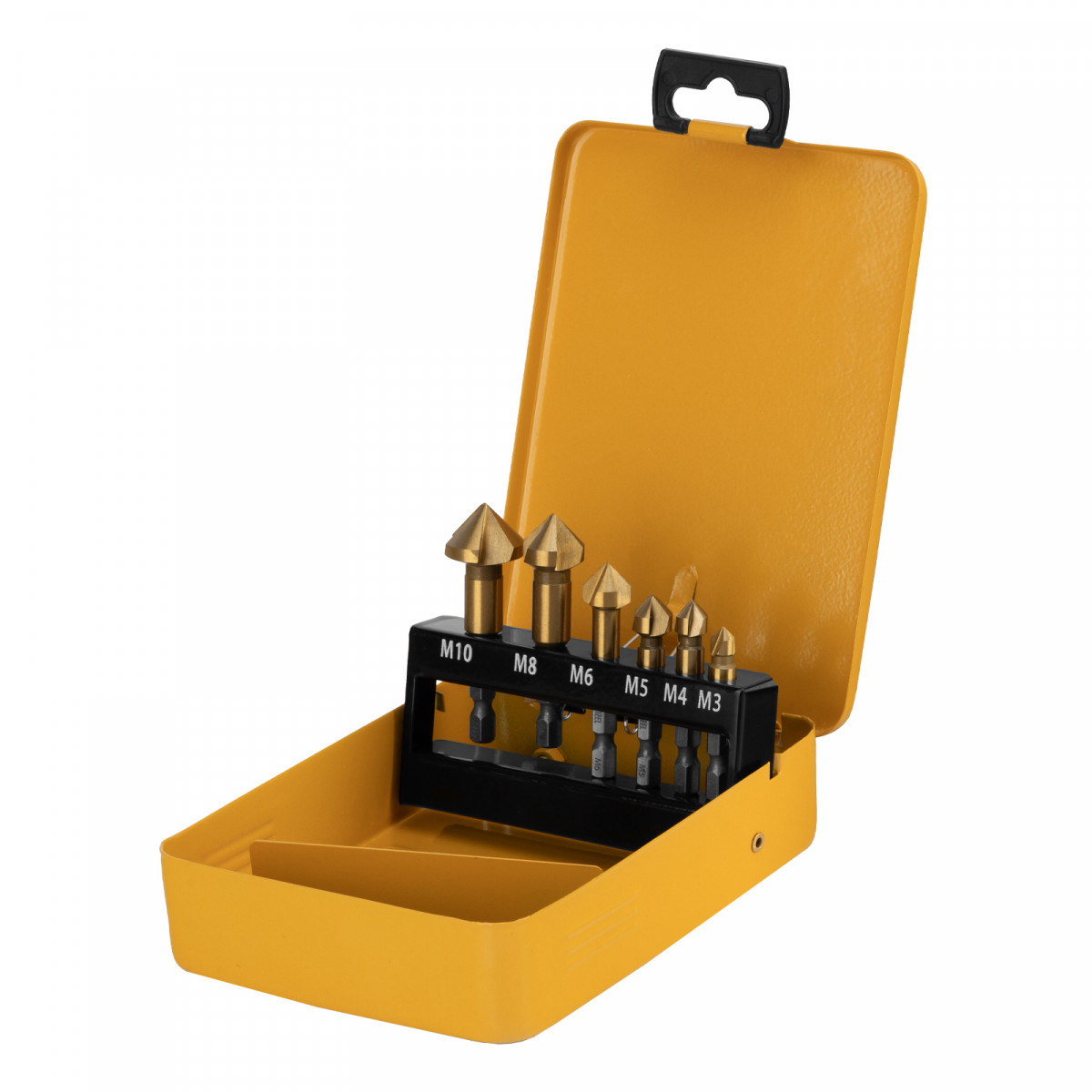 Набор зенковок, HSS, M3-M10, 6 шт, металл. кейс // Denzel