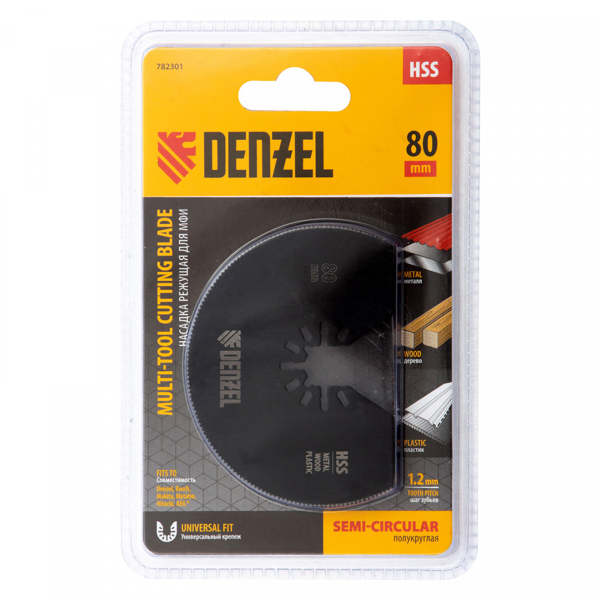 Насадка для МФИ отрезная полукруг, HSS, по металлу и дереву, 80 мм х 1,2 мм, мелкий зуб Denzel