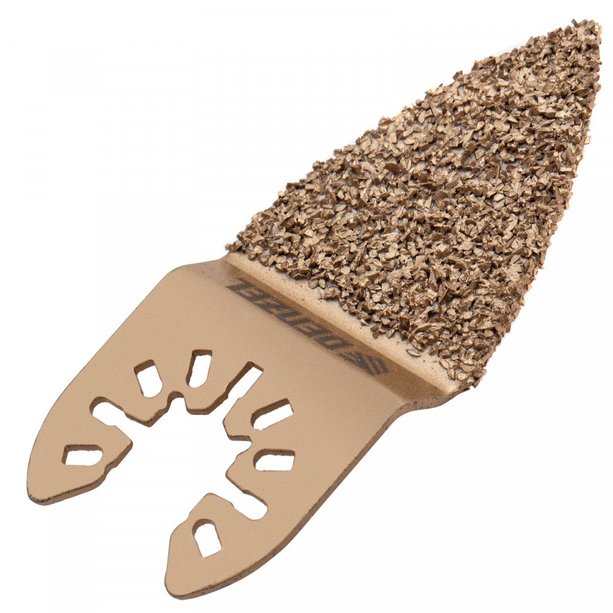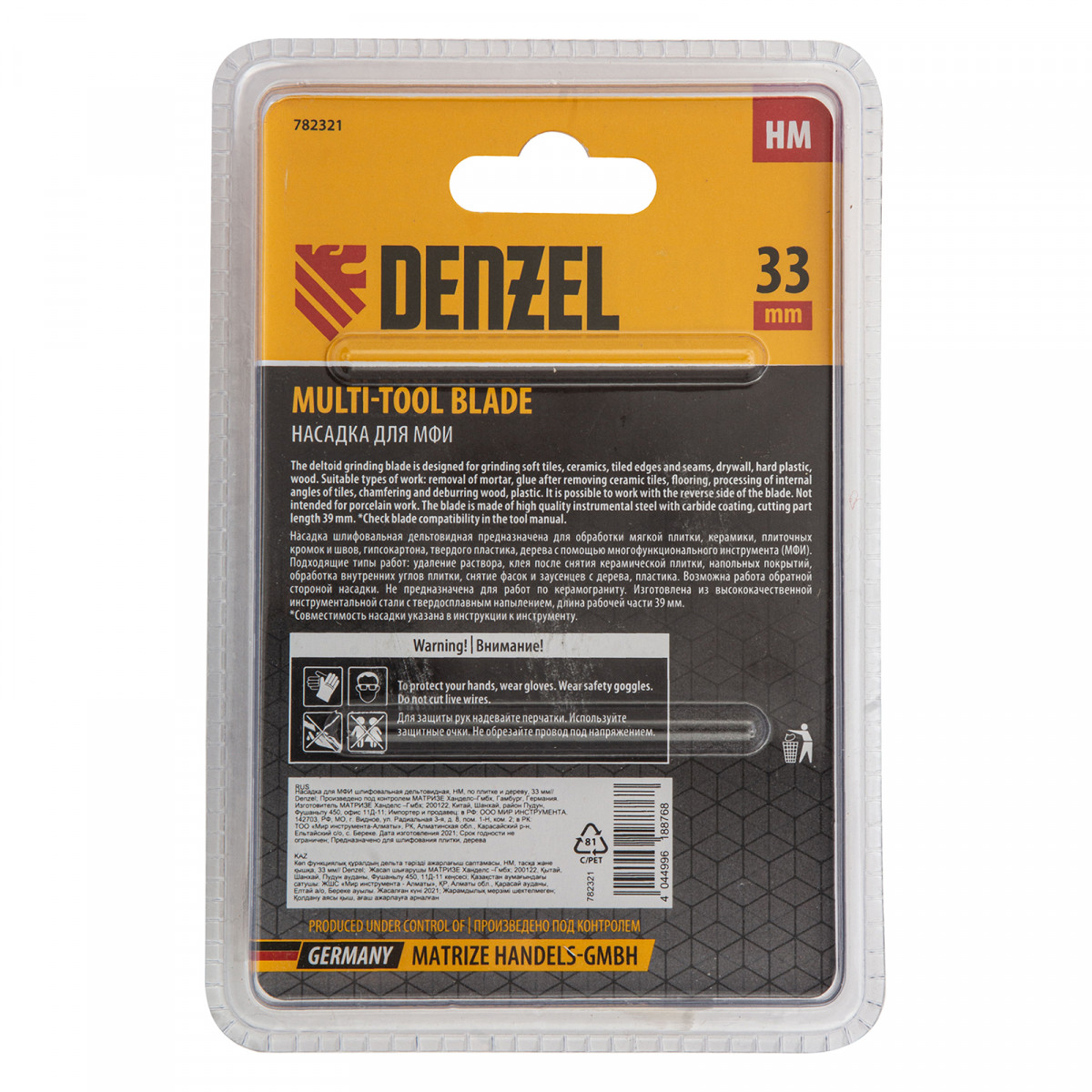 Шлифовальная дельтовидная насадка для МФИ Denzel 782321, 33 мм, из стали HM, пригодится при проведении шлифовальных работ по плитке, дереву, кирпичу и камню. С ее помощью можно подготовить поверхности к последующей отделке: удалить раствор и клей из плиточных швов, снять фаски и заусенцы и др. Насадка подходит для профессионального применения, т.к. рассчитана на интенсивные механические нагрузки за счет повышенного содержания марганца в составе стали.