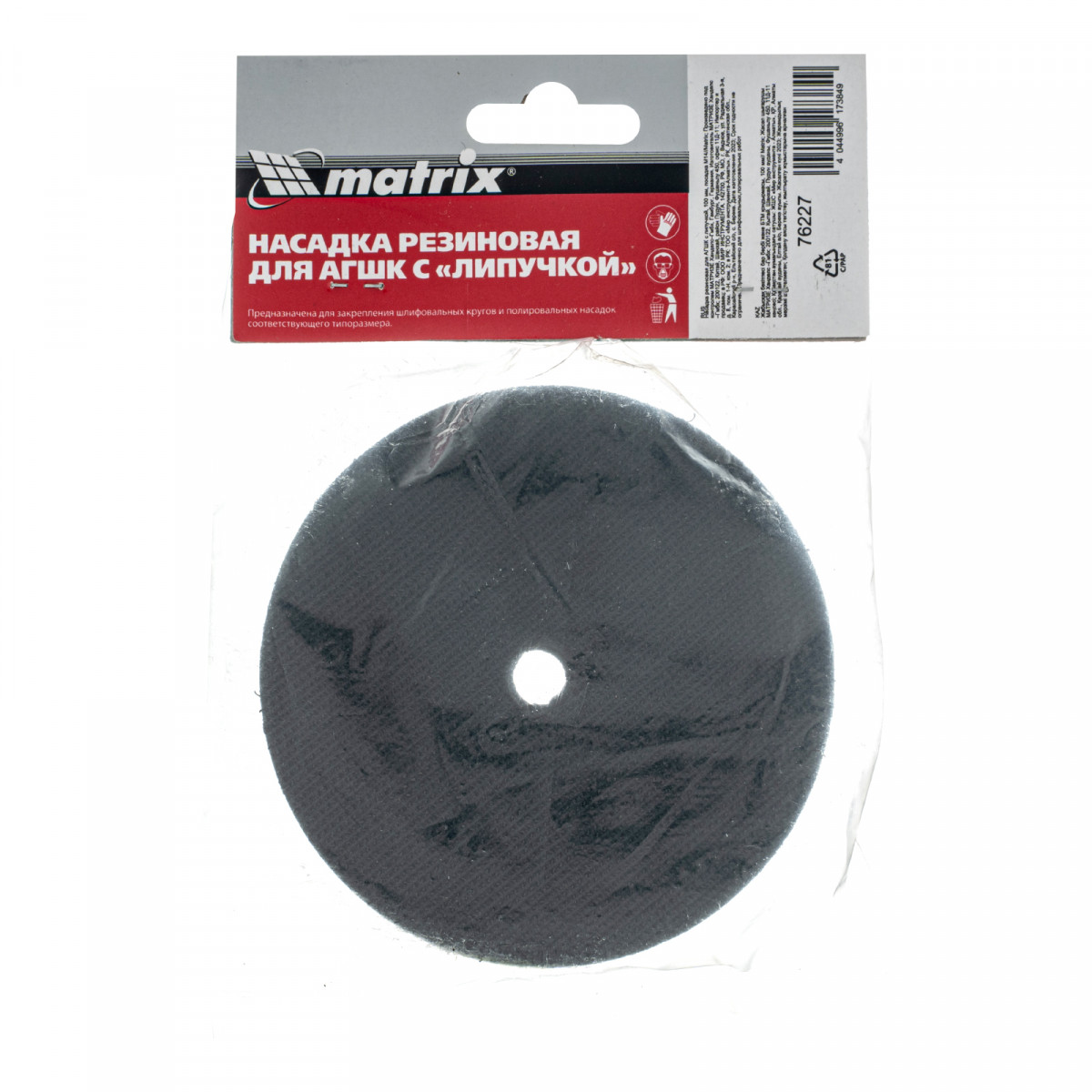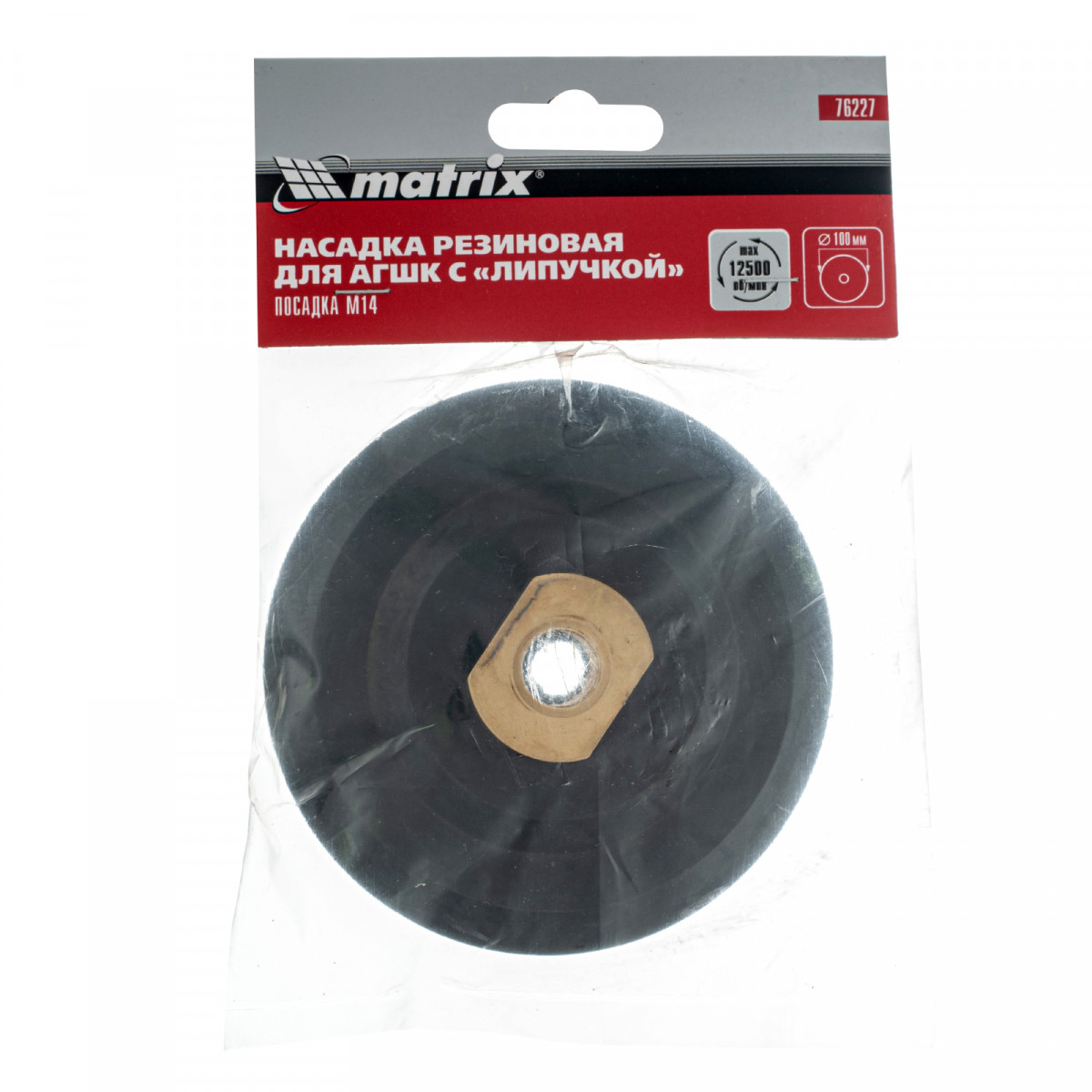 Резиновая насадка для АГШК с «липучкой» Matrix 76227 диаметром 100 мм, с посадочной резьбой М14, — опора для крепления алмазных гибких шлифовальных кругов, или «черепашек». Совместима с углошлифовальными машинами, работающими с частотой вращения до 12500 об/мин. Изготовлена из прочной резины, обеспечивает хороший контакт шлифкруга с обрабатываемой поверхностью. Насадка применяется для шлифовки и полировки каменных, гранитных, мраморных и керамогранитных поверхностей.