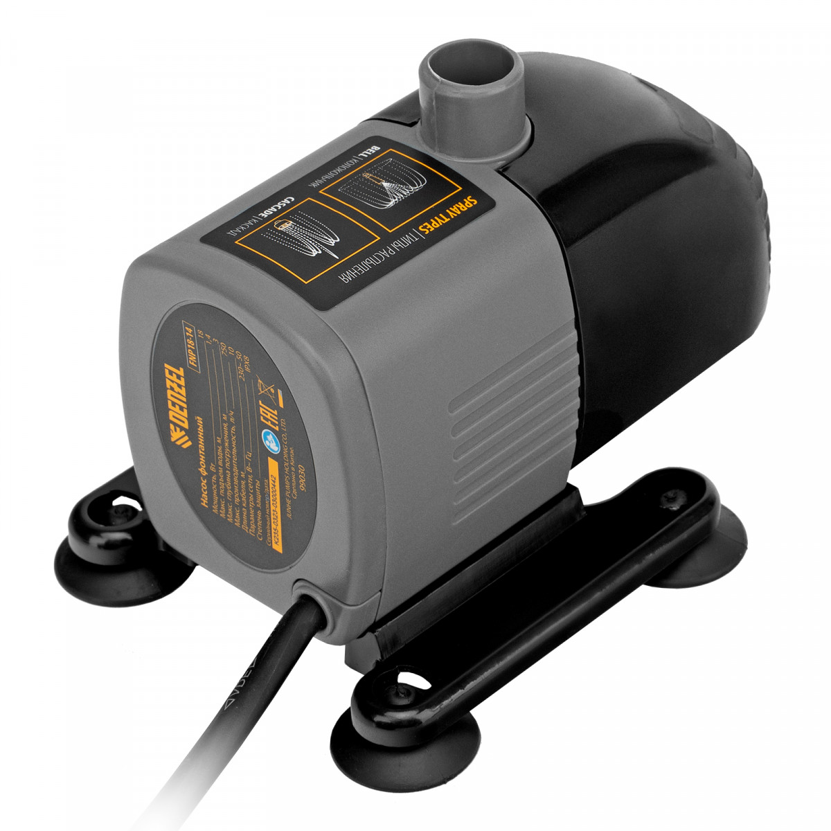 Насос фонтанный FNP18-14, 18 Вт, подъем 1,4 м, 750 л/ч, колокольчик/каскад Denzel