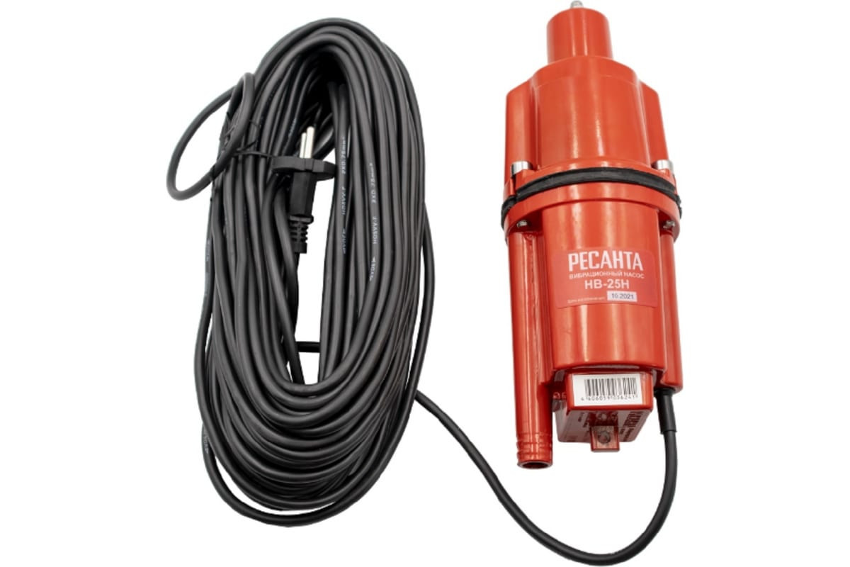 Вибрационный насос Ресанта НВ-25Н диаметром 100 мм с нижним забором воды обеспечит автономное водоснабжение из любого удаленного от объекта источника.