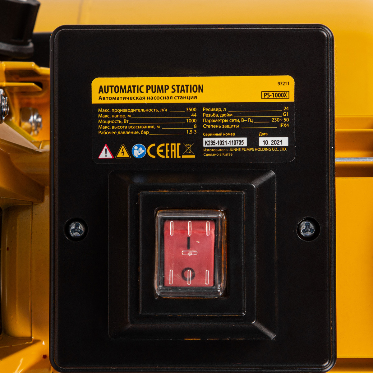 Насосная станция Denzel PS1000X 97211 мощностью 1000 Вт выполнена из нержавейки, оснащена ресивером на 24 л, обеспечивает производительность до 3500 л/ч и подъем воды до 44 м. Рассчитана на бытовое использование в загородных домах, квартирах и на дачах. Мощности 1 кВт вполне хватит для подключения устройства к оросительным системам, перекачивания воды в частный дом, обеспечения отопительных нужд и т.д. Станция не требует постоянного контроля со стороны пользователя, поскольку работает в автоматическом режиме. Благодаря ресиверу на 24 л в случае отключения электричества в доме всегда будет запас воды на нужды первой необходимости.