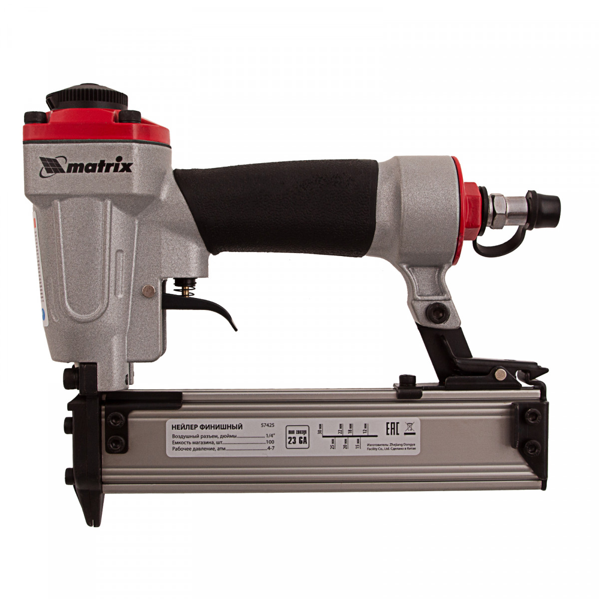 Нейлер финишный, шпилькозабивной пистолет, пневматический, гвоздь 23GA D 0.64 мм длина 10-30 мм Matrix