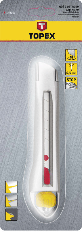 Нож 18 мм с выдвижными лезвием металлический корпус+винт TOPEX